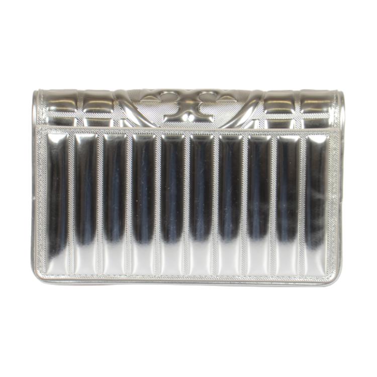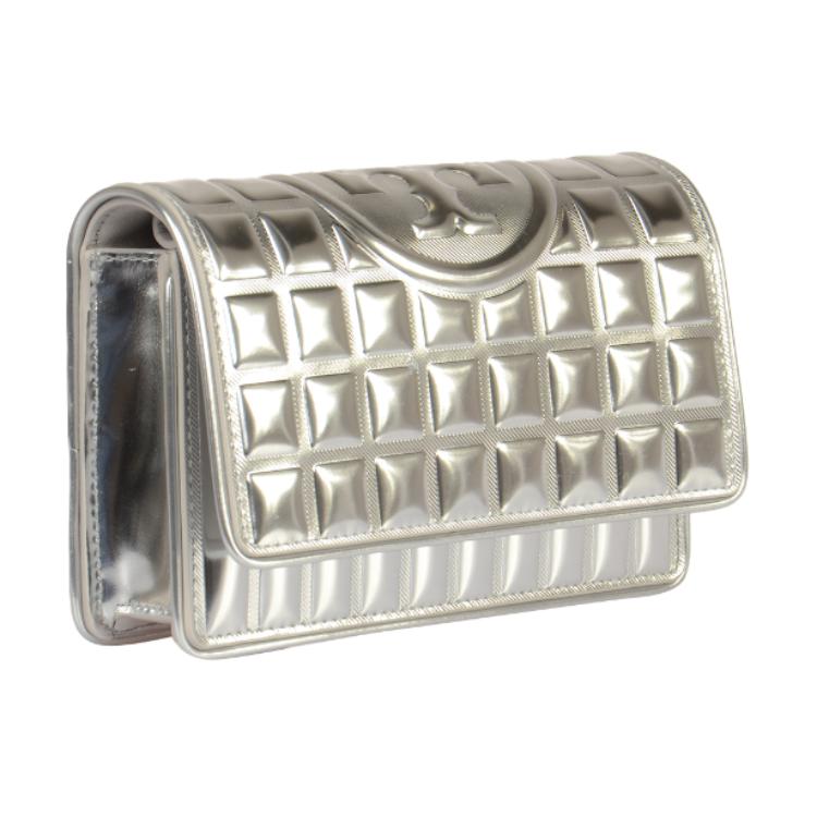 TORY BURCH Кожаный женский кошелёк Fleming серебристый