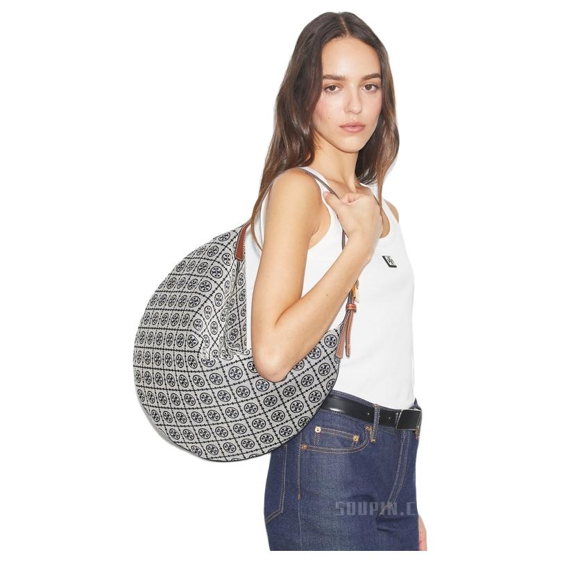 TORY BURCH Тканевая сумка полумесяц с монограммой T