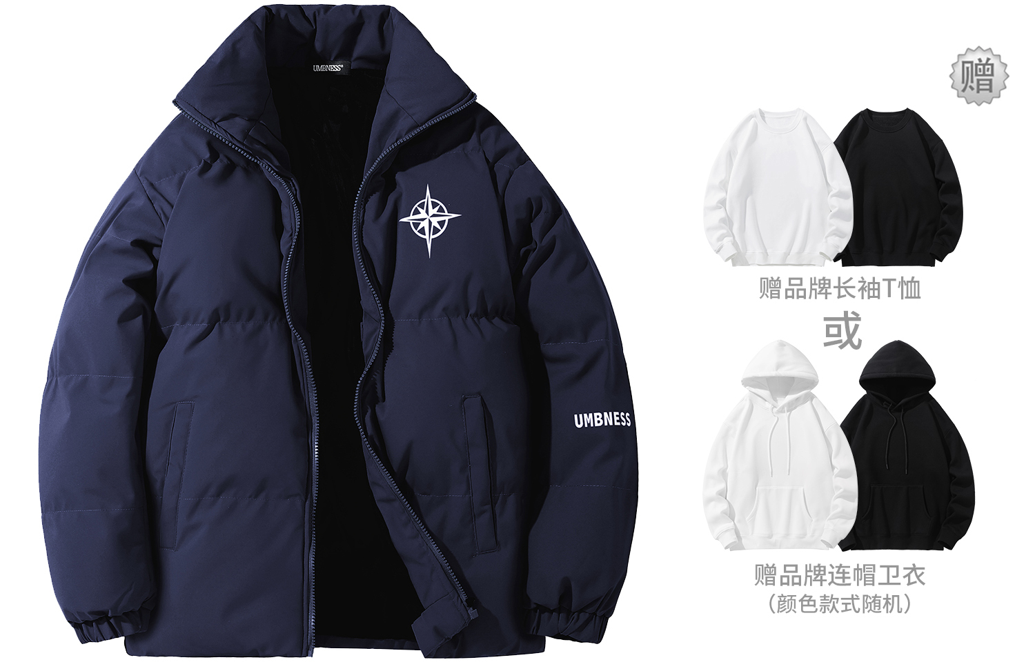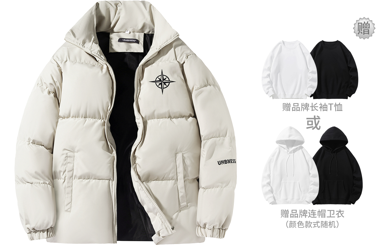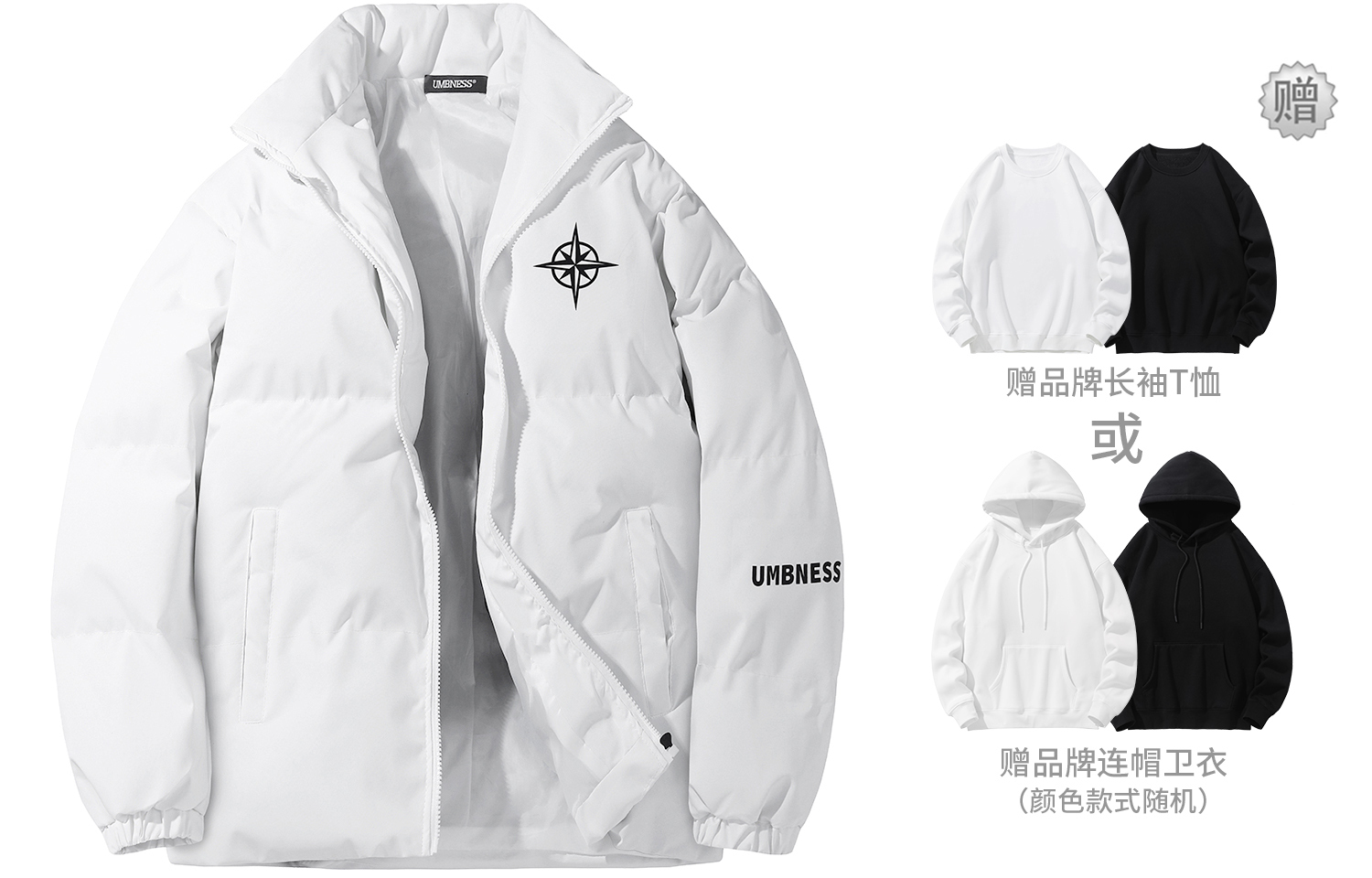 UMBNESS Пуховик Unisex, Black (Comes with Brand Sweatshirt)