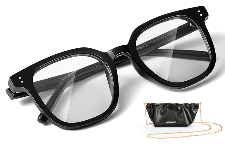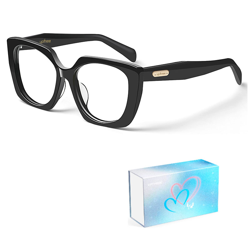 Upthree Пластиковая квадратная оправа для очков TR/Memory унисекс, Cake Bear Box (New Version Black Frame Blue Light Blocking)