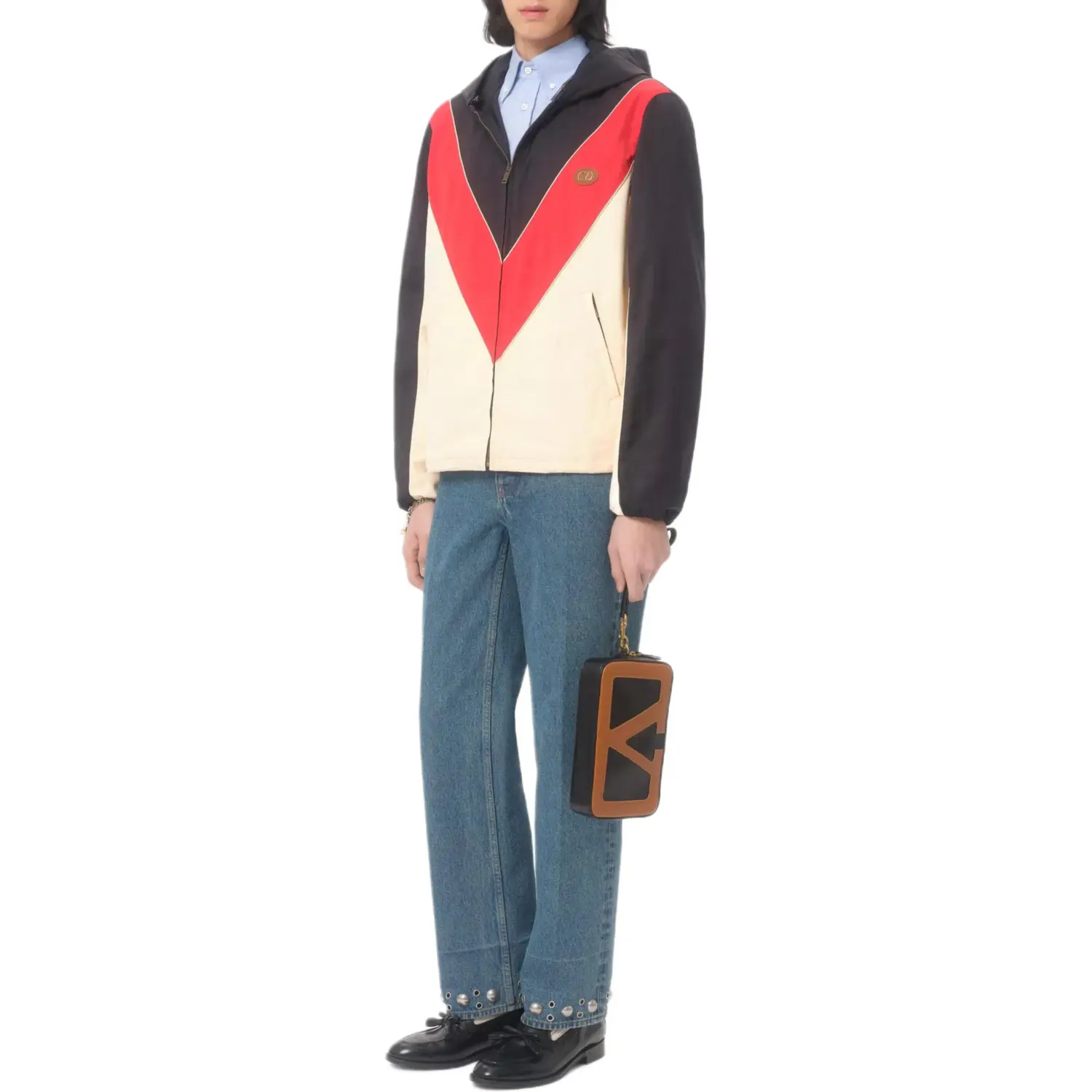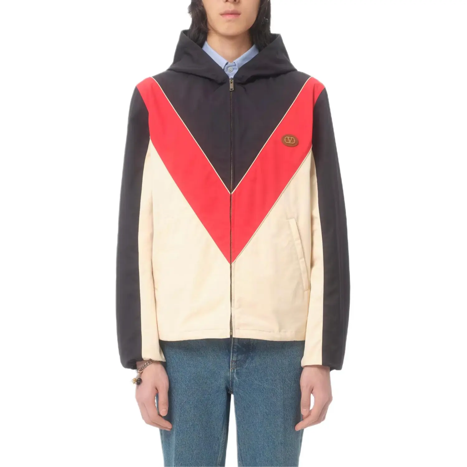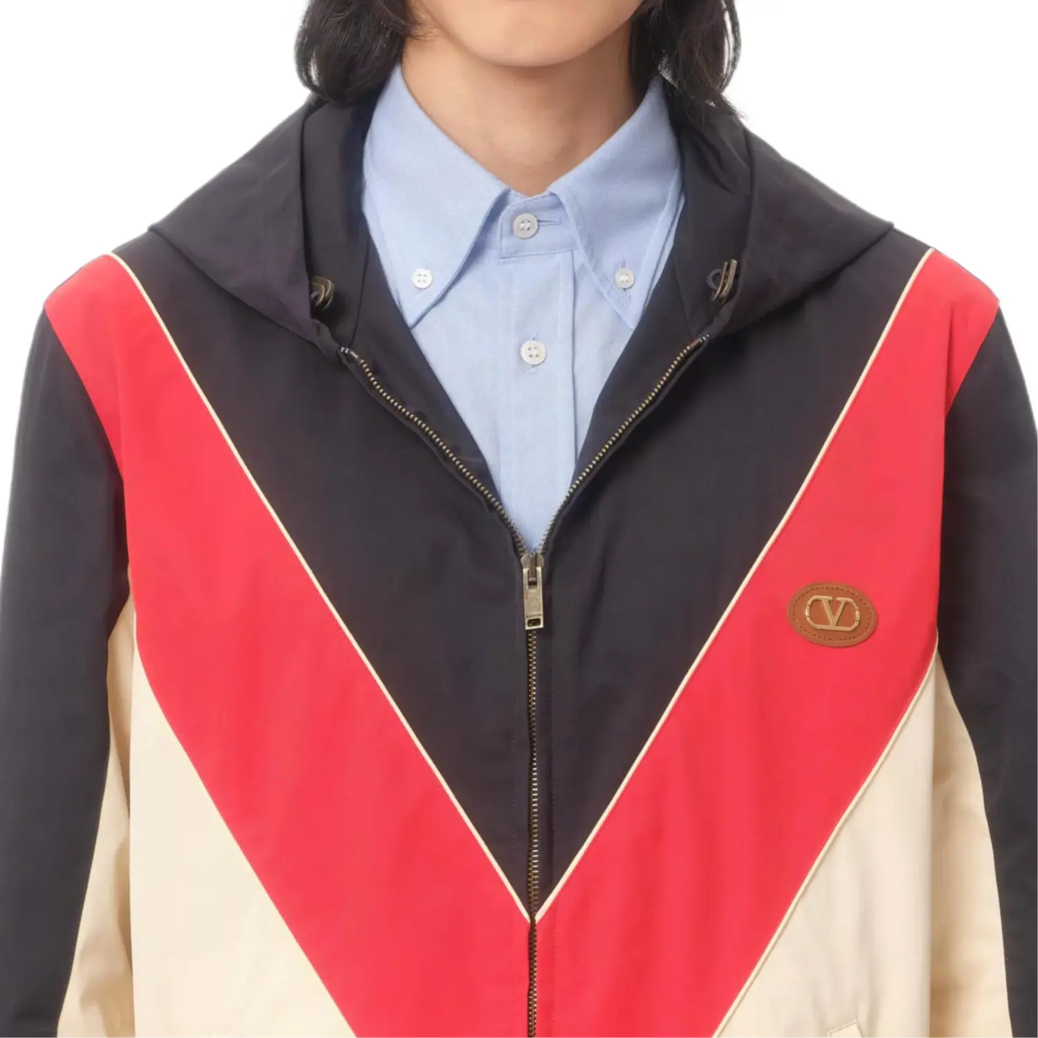 Valentino Ветровка с капюшоном и нашивкой VLogo, Dark Blue Sky