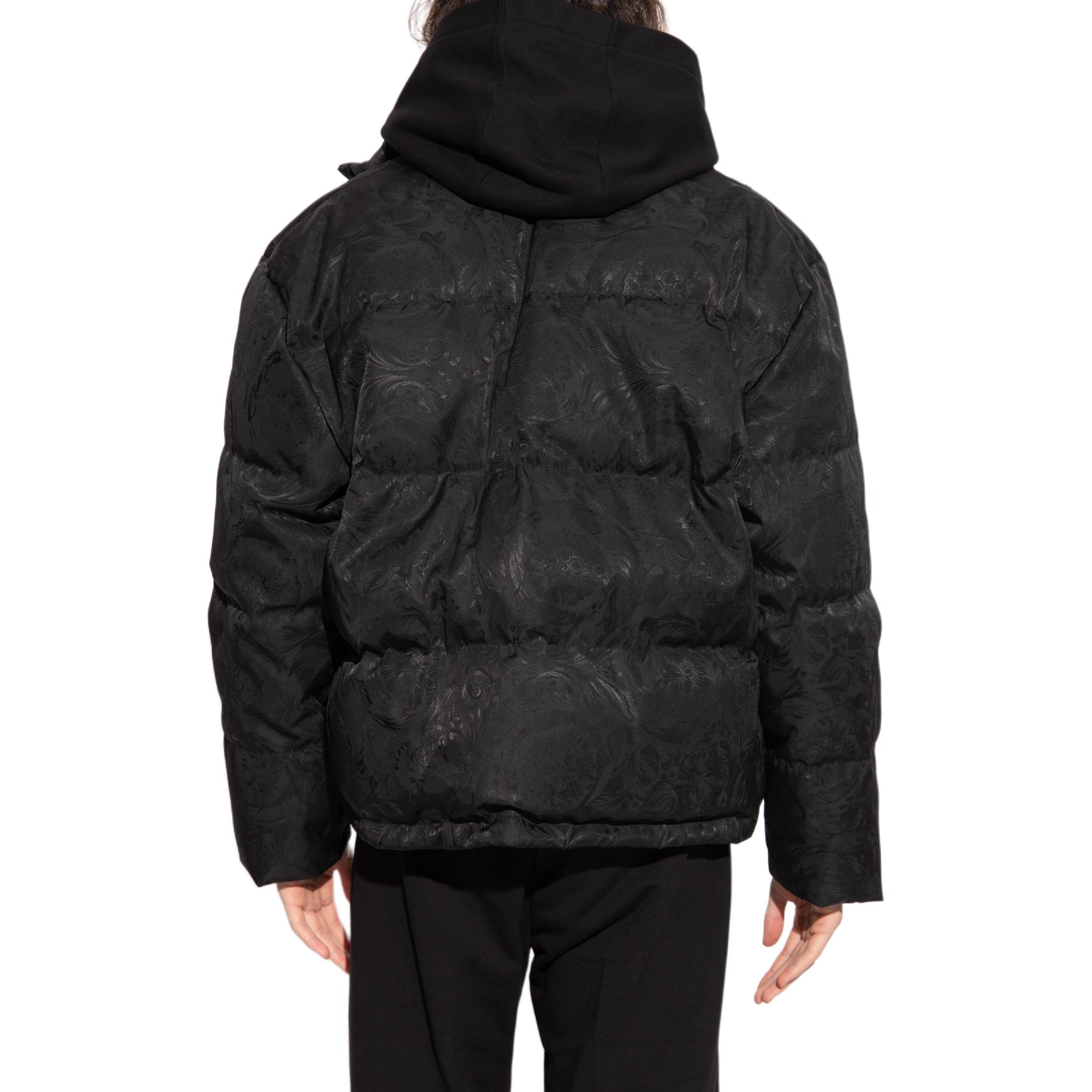 VERSACE Барокко принт пуховик с молнией, Black