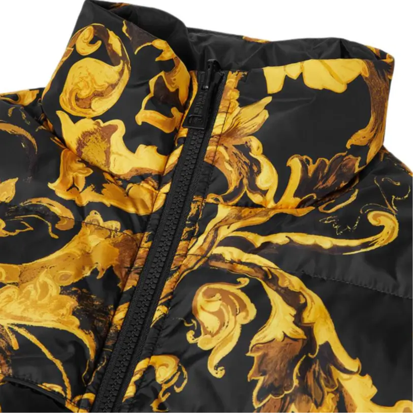 VERSACE Пуховик-жилет с джинсовым принтом барокко, Black Gold 47 464₽