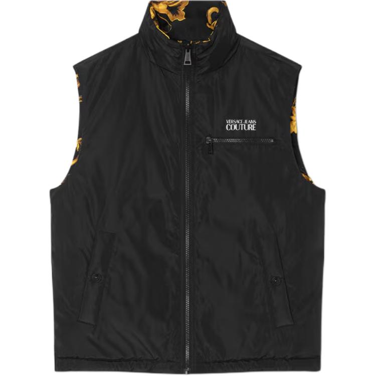 VERSACE Пуховик-жилет с джинсовым принтом барокко, Black Gold
