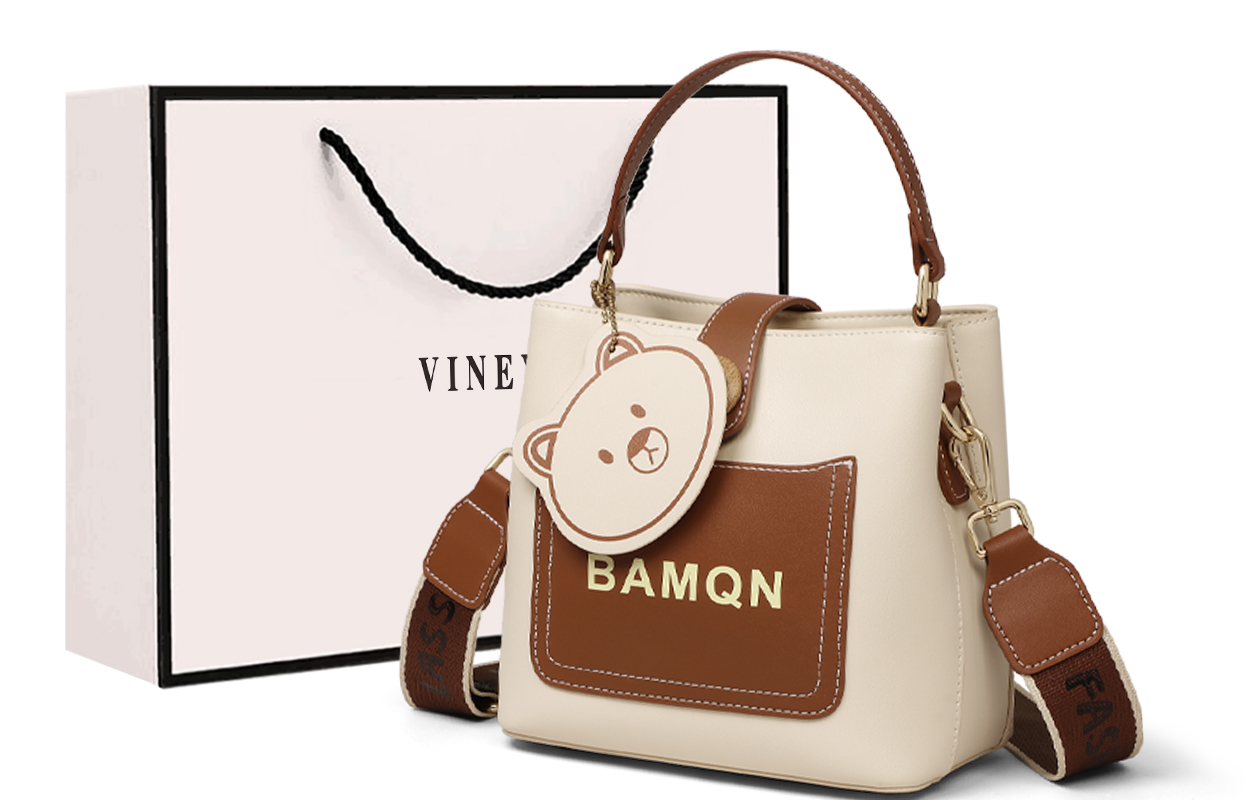 VINEY Кожаная сумка через плечо, White & Brown