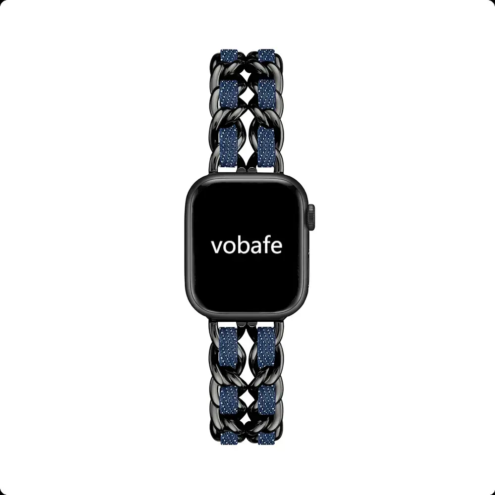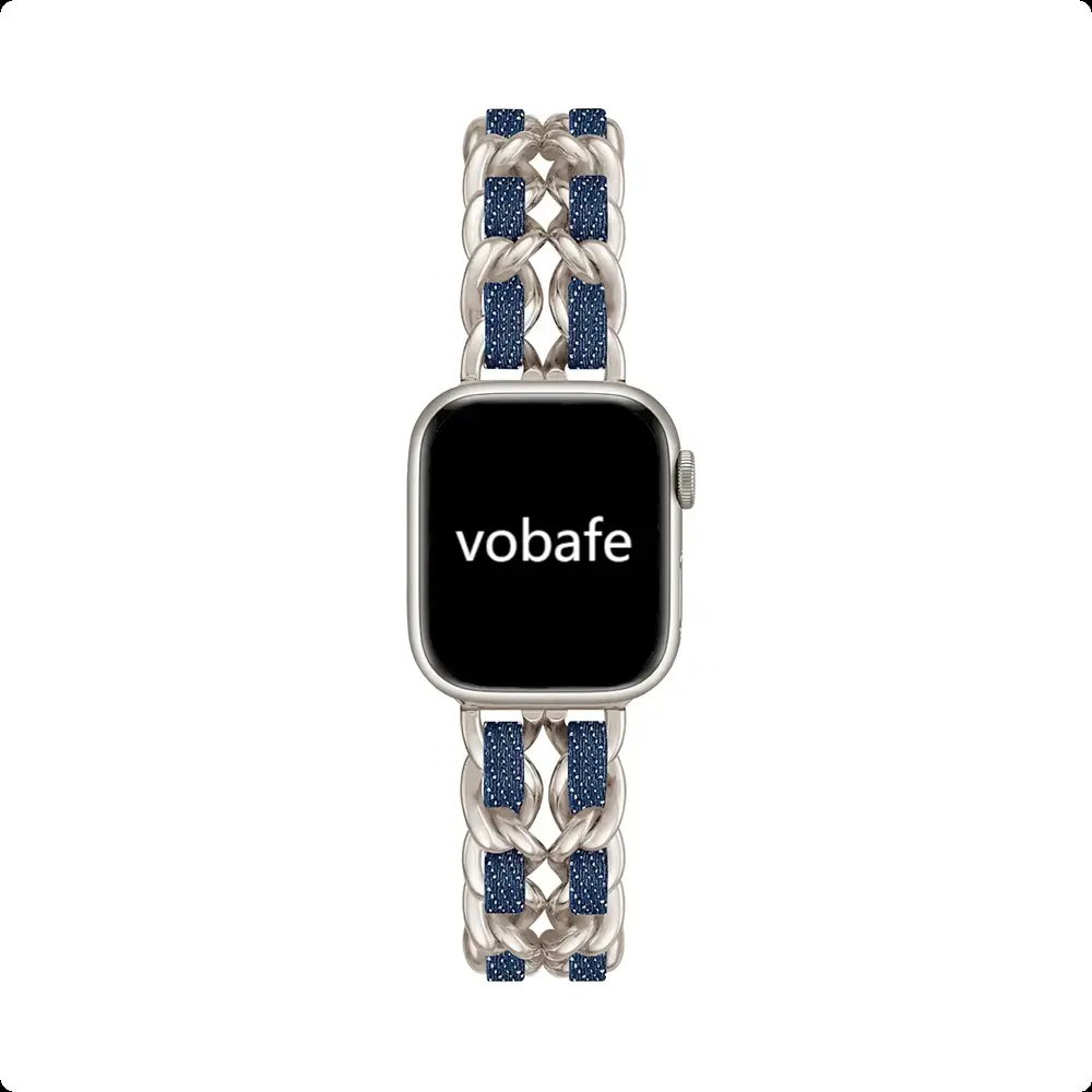 Vobafe Часы Strap Apple Compatibility Metal, Silver with deep denim