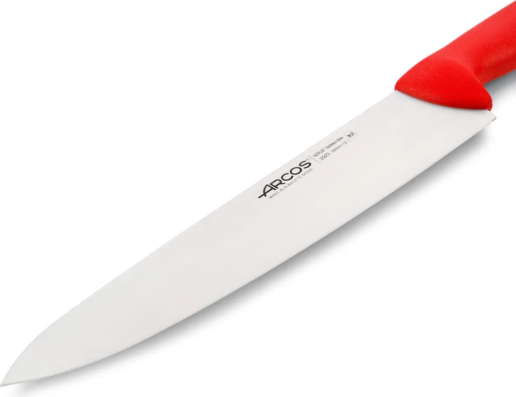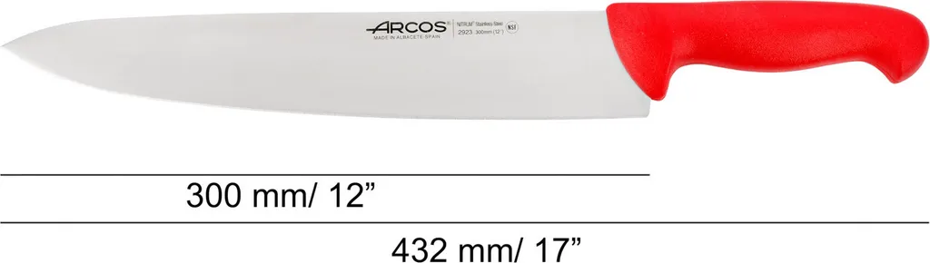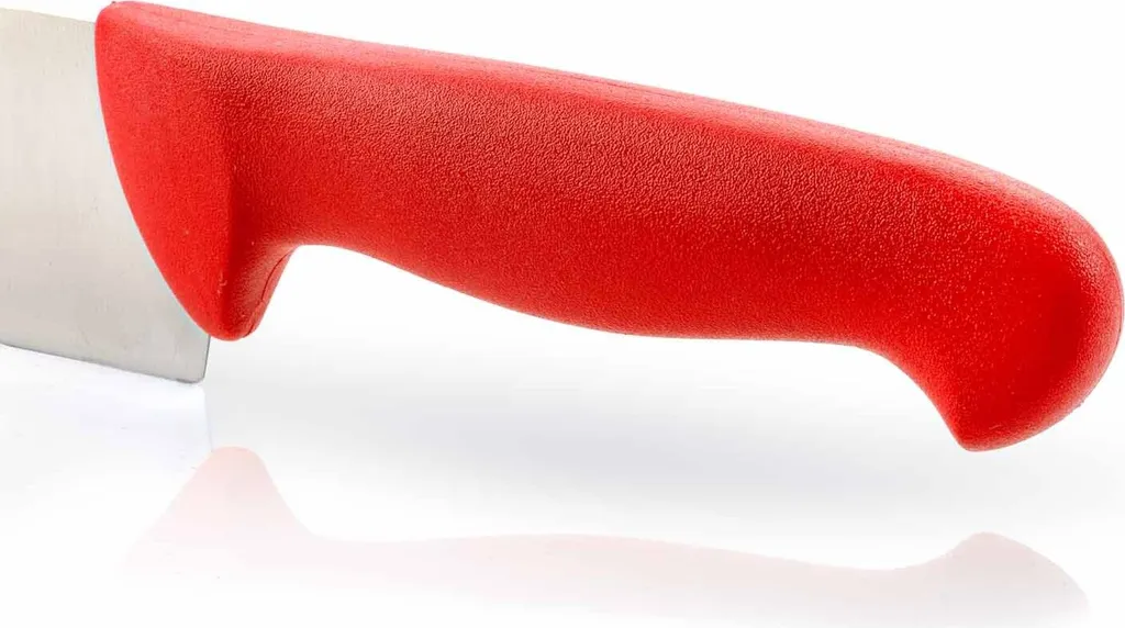 Профессиональный поварской нож с длинным лезвием 30 см и яркой красной рукояткой. Предназначен для нарезки крупных продуктов, шинковки овощей и разделки больших кусков мяса. Универсальный инструмент с отличным балансом и эргономикой для интенсивной работы на кухне.