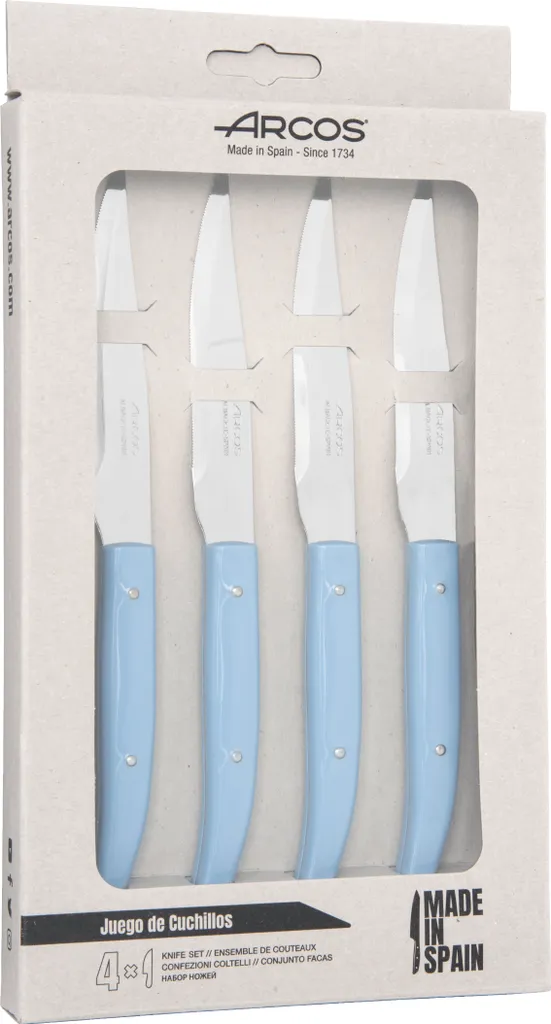 Набор из 4 микроперфорированных ножей для стейков с лезвием из нержавеющей стали NITRUM, которое обеспечивает высокую твердость, большую производительность резки и большую долговечность лезвия.