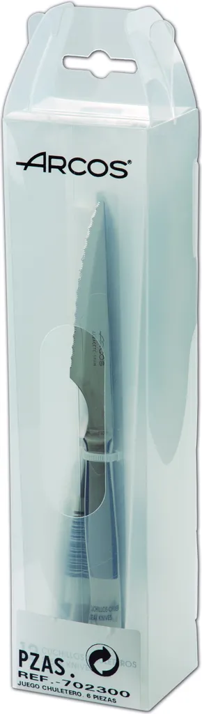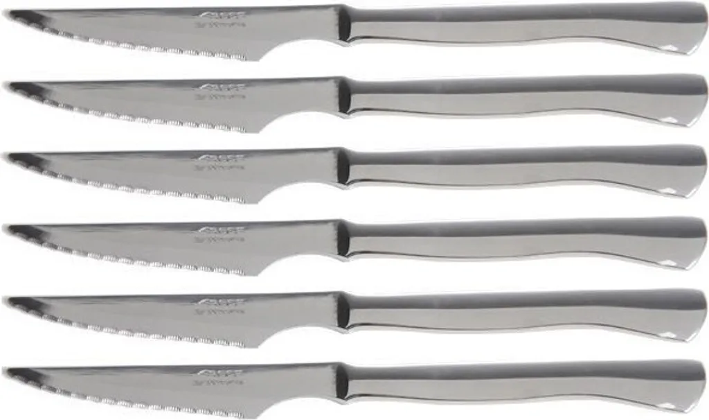 Комплект из шести стейковых ножей с лезвиями 900 мм для ресторанной сервировки и домашнего использования. Ножи изготовлены из нержавеющей стали с заточкой для легкого разрезания мяса, а эргономичные рукояти обеспечивают комфортное использование.