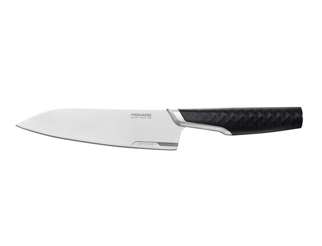 Нож поварской Тайтен 16 см, средний, FISKARS. Этот универсальный нож среднего размера с прочным лезвием идеально подходит для решения любых задач. Инновационное титановое лезвие чрезвычайно легкое, что обеспечивает исключительную точность резки и простоту использования. Революционная технология LZR-EDGE сохраняет лезвие в четыре раза дольше, чем при использовании стандартных ножей. Эргономичная рукоятка с 3D-текстурой удобно лежит в руке. Усиление и отделка рукоятки из нержавеющей стали создают очень сбалансированное впечатление, что обеспечивает его зиму. Для заточки ножей Тайтен следует использовать керамическую точилку. Эргономичная рукоятка с трёхмерным узором идеально лежит в руке.