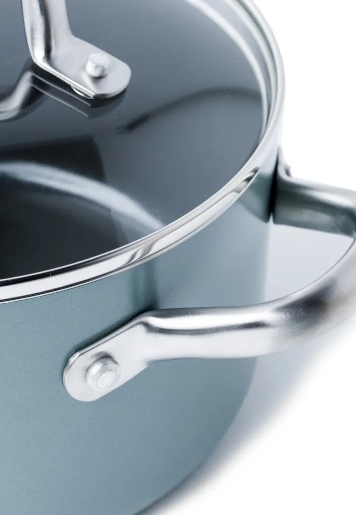 Набор посуды GreenPan MAYFLOWER из 10 предметов — элегантность в голубом цвете. Испытайте высшее удовольствие от приготовления пищи с набором посуды GreenPan MAYFLOWER из 10 предметов. Этот высококачественный набор впечатляет своим элегантным серым цветом и прочным алюминием в качестве основного материала. Каждый предмет набора тщательно продуман для достижения наилучших результатов приготовления пищи, будь то жарка, тушение или приготовление на пару. Стильный дизайн гармонично впишется в любую современную кухню и превратит приготовление пищи в удовольствие. Набор посуды GreenPan MAYFLOWER из 10 предметов — сочетание качества и стиля. Набор посуды GreenPan MAYFLOWER из 10 предметов сочетает в себе функциональность и эстетику. Серая цветовая гамма придает набору вневременную элегантность, которая гармонично впишется в любой интерьер кухни. Антипригарное покрытие гарантирует, что еда не пригорит, а очистка не составит труда. Этот набор универсален в использовании и позволит вам раскрыть свой творческий потенциал на кухне.