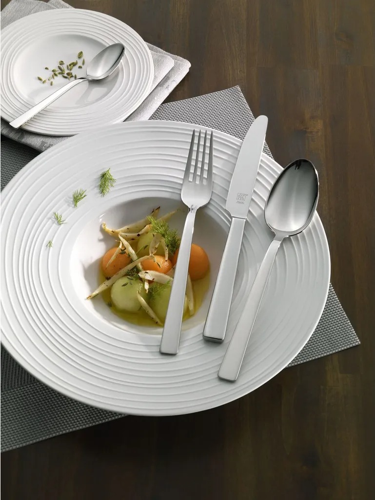 Набор из 68 предметов из нержавеющей стали 18/10. Простой и понятный дизайн. Изогнутые вверх ручки. Полированная поверхность с закругленными краями. Можно мыть в посудомоечной машине. Этот набор идеально укомплектован. Продуманный дизайн и приятная трапеза – вот отличительные черты коллекции ZWILLING. Этот набор столовых приборов из нержавеющей стали также впечатляет высоким качеством материалов.
