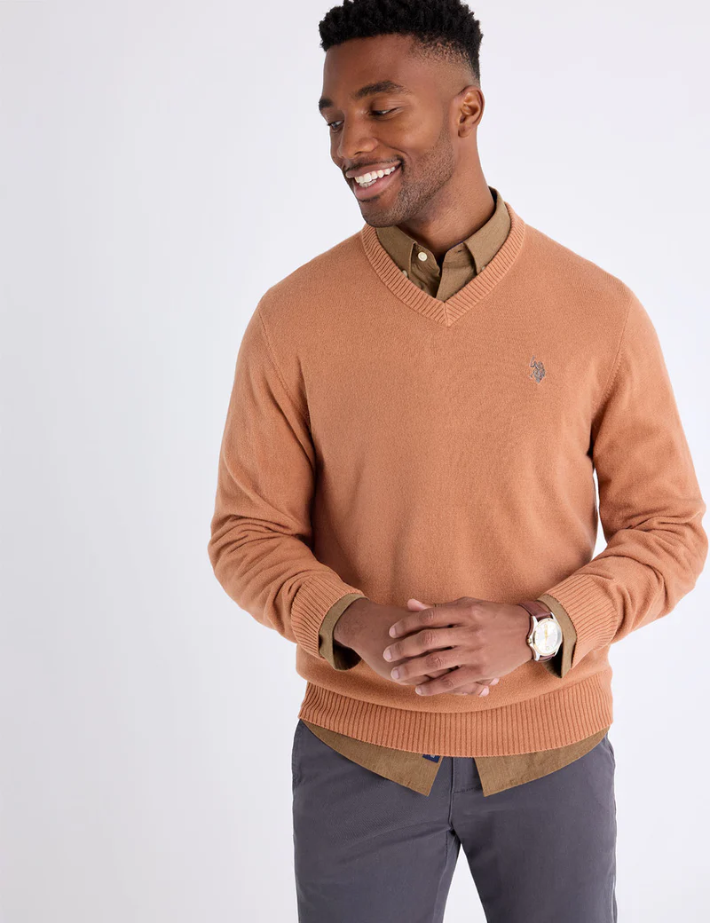 Свитер U.S. Polo Assn Solid V-neck, оранжевый