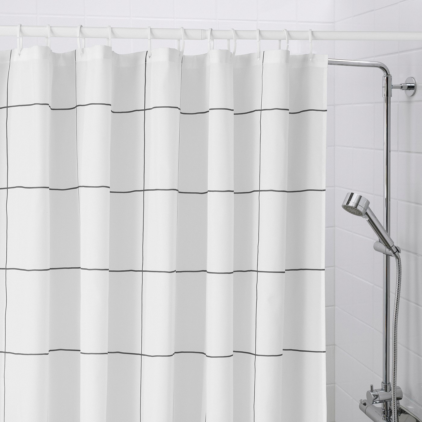 Штора для душа, белая/клетчатая, 180х200 см Jämtstarr IKEA 2 529₽