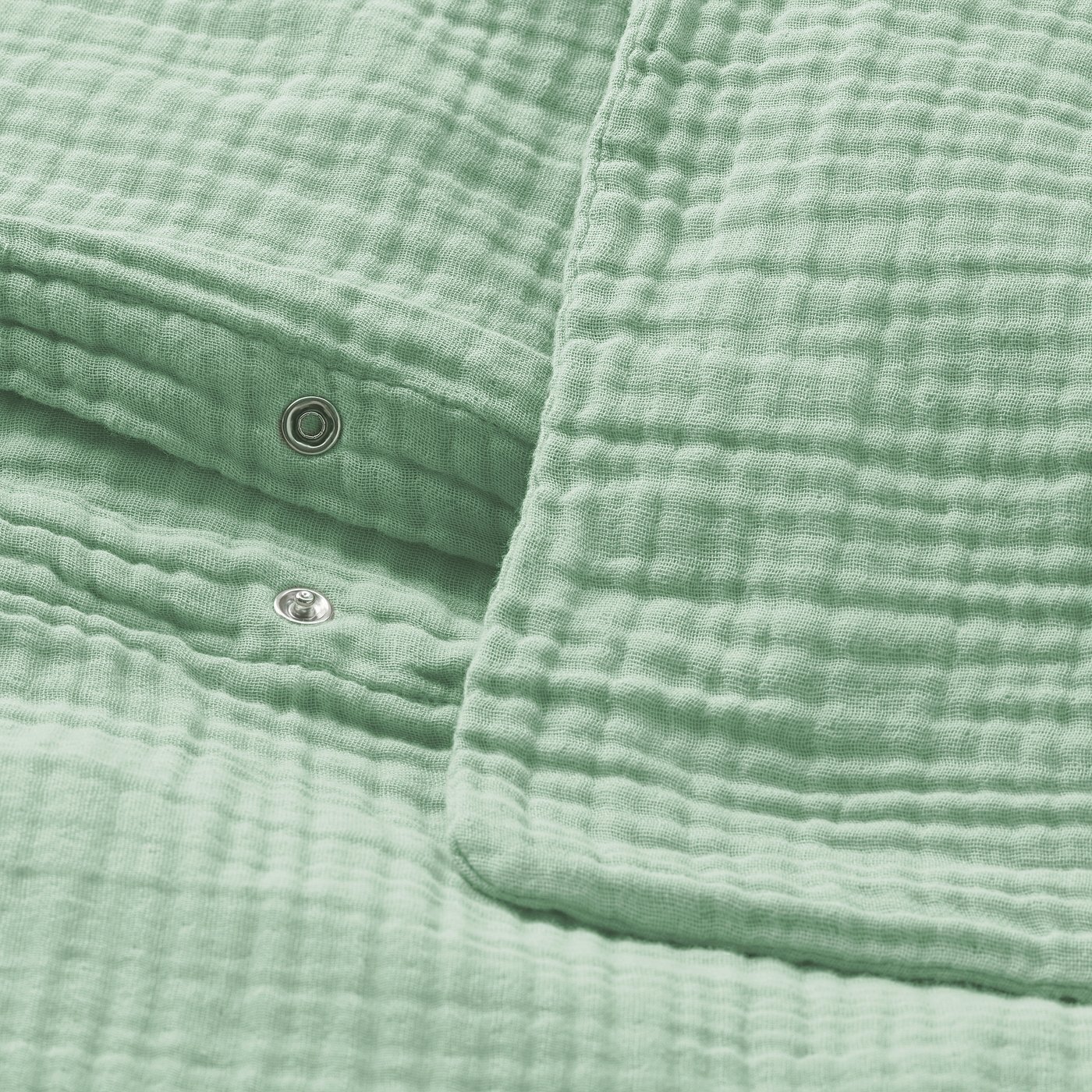 Пододеяльник с застежкой на металлическую кнопку снизу.