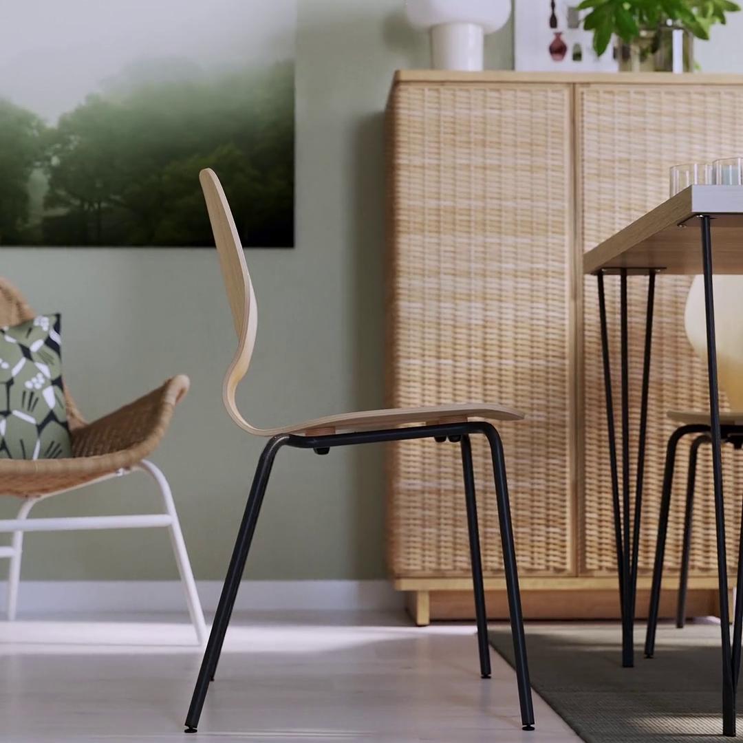 Стул прекрасно сочетается с широким выбором столов серии SKÅLSTA в различных вариантах отделки и цветов.