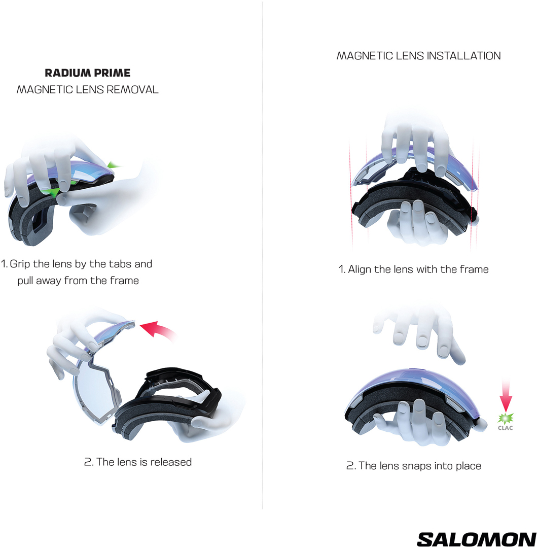 Интуитивно понятная система смены линз: надеть и снять - смена линз еще никогда не была такой простой! Шестнадцать сильных магнитов удерживают линзу на месте, а резиновые захваты позволяют снимать ее, не пачкая.