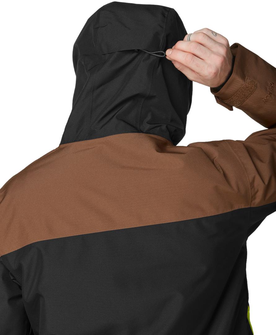Функциональность соответствует моде благодаря водонепроницаемой молнии YKK в качестве основной застежки, а лайкровые гетры на запястьях способствуют надежной посадке. Широкие возможности для хранения вещей включают карманы для рук на молниях, расположенные под клапанами, и нагрудные карманы с водонепроницаемыми молниями. Дополнительная индивидуальная настройка возможна благодаря регулируемому подолу со шнурком и эргономичному капюшону с одноточечной системой регулировки.