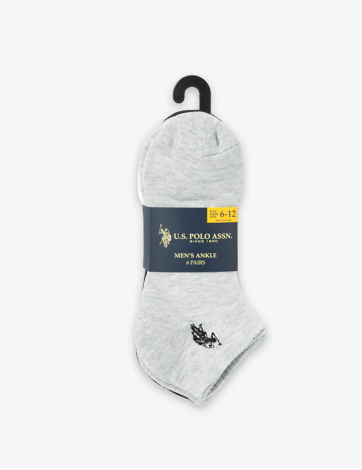 Сохраняйте прохладу, комфорт и классический вид с мужскими носками Core Assorted Ankle Socks. Эта упаковка из 6 пар, разработанных для ношения в течение всего дня, представлена в базовых чёрном, белом и сером цветах и идеально подходит для сочетания с кроссовками или кедами. Низкий вырез на щиколотке и культовый логотип US Polo Assn. сочетают в себе сдержанный стиль и надёжный комфорт.