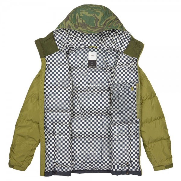 Куртка Kilroy отличается модным дизайном с цветовыми блоками. Оливковые цветовые блоки также разбавлены камуфляжным принтом, создавая эффектный акцент. Черно-белая шахматная вставка, которая уже видна на капюшоне, становится еще одной приманкой для глаз.
