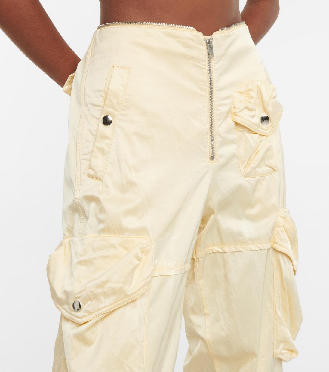 Acne Studios представляет новый взгляд на утилитарный стиль с этими брюками-карго. Изготовлены из блестящего атласа, имеют открытую застежку-молнию и множество карманов.