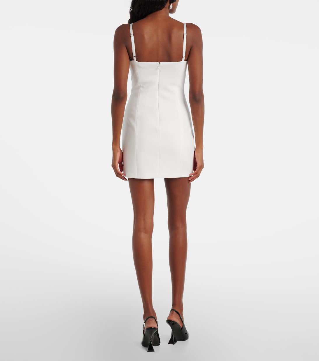Blumarine передает роскошь 2000-х, адаптируя эстетику Y2K для современной аудитории. Мини-платье сшито в Италии из креп-кади с цветочными мотивами, вырезанными лазером, и застежкой-молнией на спине.