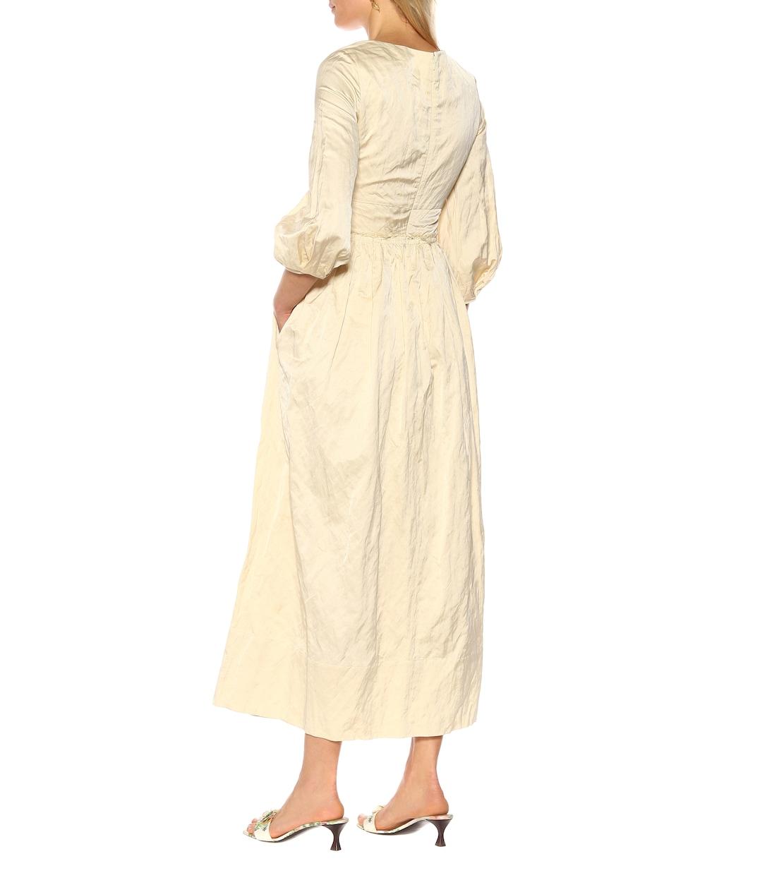 Brock Collection, пробуждая нашу внутреннюю причудливость, представляет платье Ondina, эксклюзивное для Mytheresa. Платье кремового оттенка, выполненное в Италии из блестящего тисненого атласа, отличается глубоким овальным вырезом и облегающим лифом, переходящим в воздушный подол средней длины. Мы носим наши с изящными аксессуарами и зачесанными назад волосами, чтобы подражать желанному поэтическому очарованию бренда.