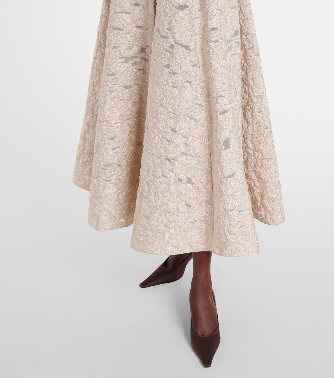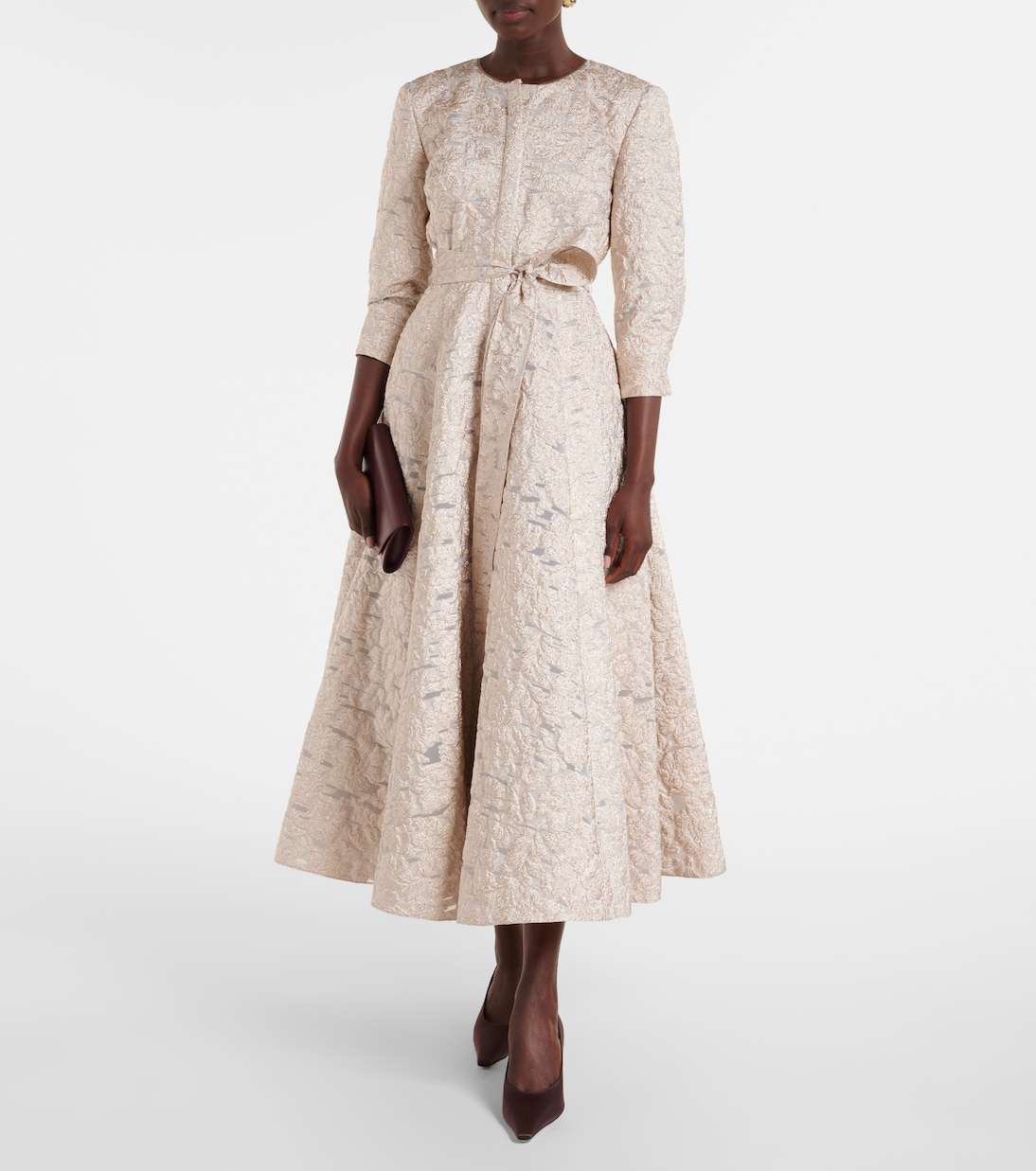Carolina Herrera - постоянный гость красной дорожки, ее считают создателем самых элегантных вечерних нарядов. Это платье сшито по силуэту миди из жаккарда с нотками ламе.