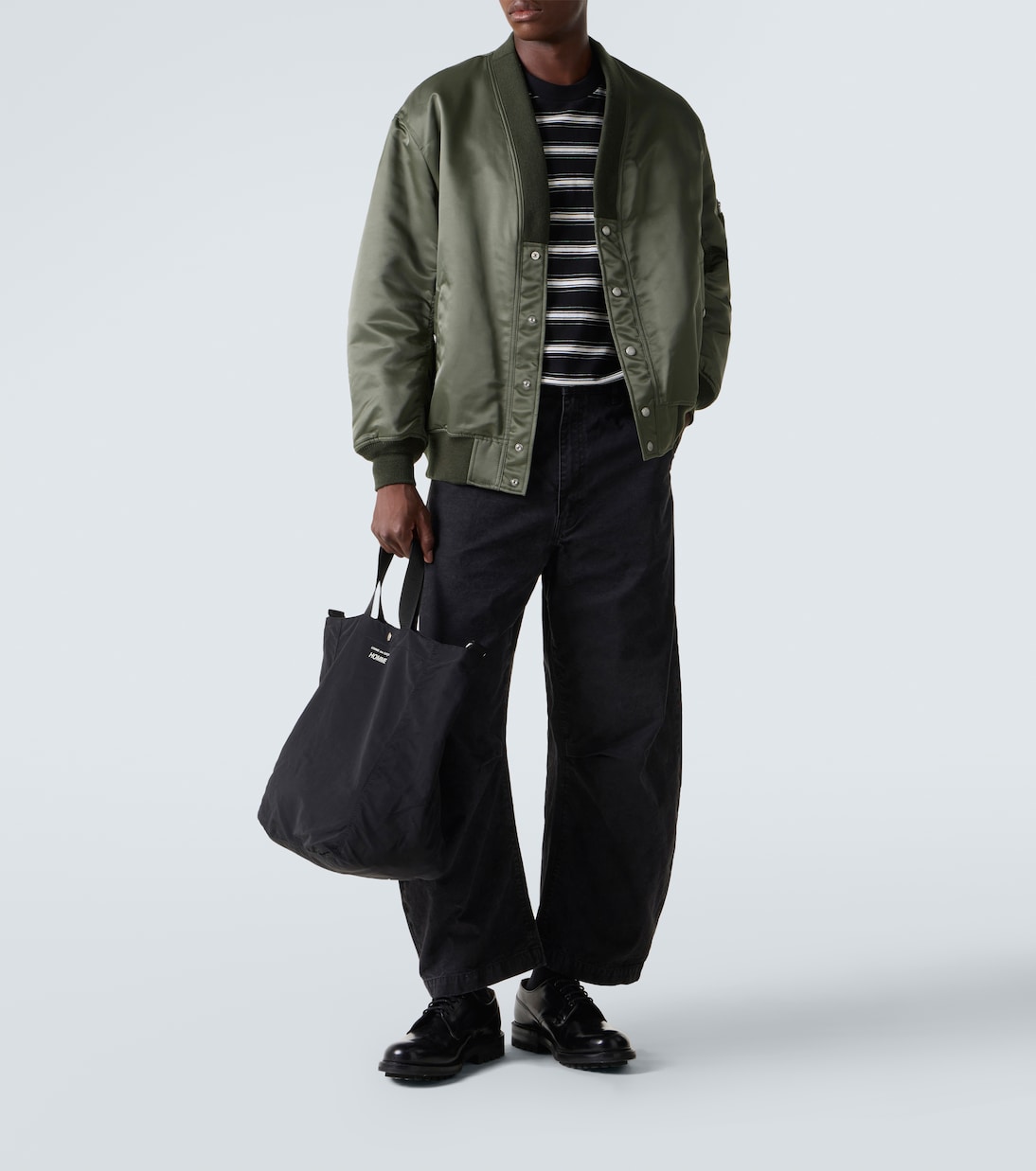 Comme des Garçons Homme славится своим авангардным подходом к созданию базовых предметов мужской одежды, таких как эта куртка-бомбер. Изготовленный из твила с отделкой из ребристой ткани, этот фасон отличается свободным силуэтом и V-образным вырезом.