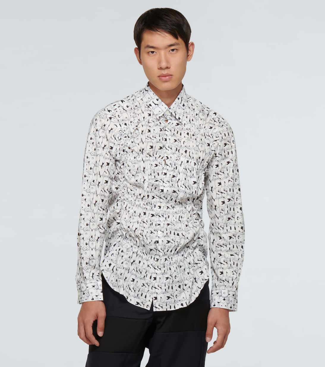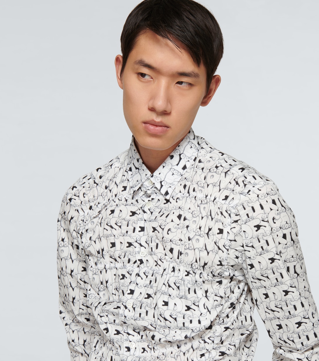 Comme des Garçons SHIRT в сотрудничестве с американским художником Kaws создал эту черно-белую принтованную рубашку с фирменным дизайном художника. Изготовлено из хлопка, имеет классическую застежку на пуговицы спереди и длинные рукава.