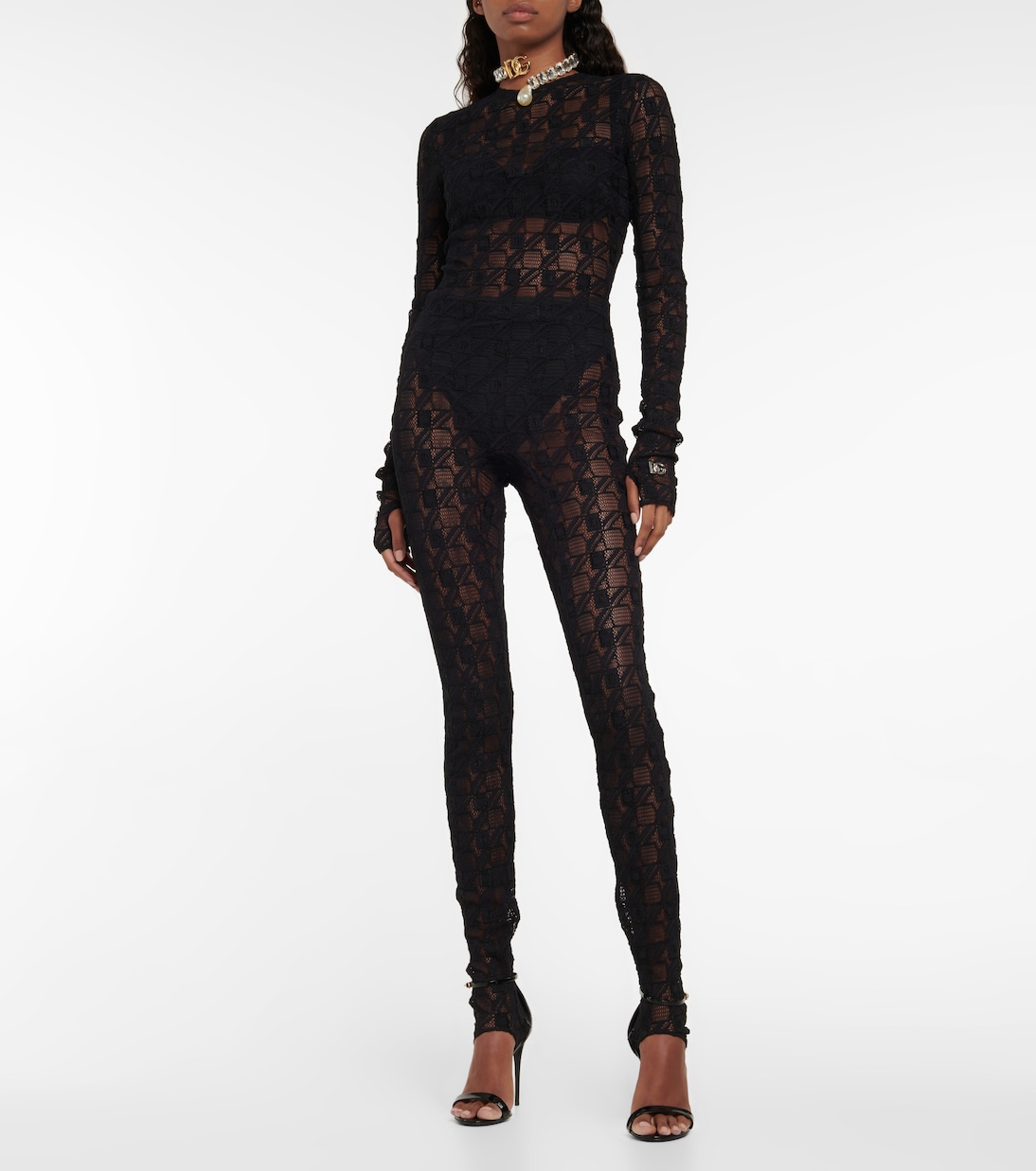 Dolce&Gabbana переосмысливает классический комбинезон, предлагая модель обтекаемого кроя. Эта модель, облегающая фигуру и входящая в коллекцию FW22, которая исследует современный подход к традиционным тканям, имеет геометрический узор и производится в Италии.