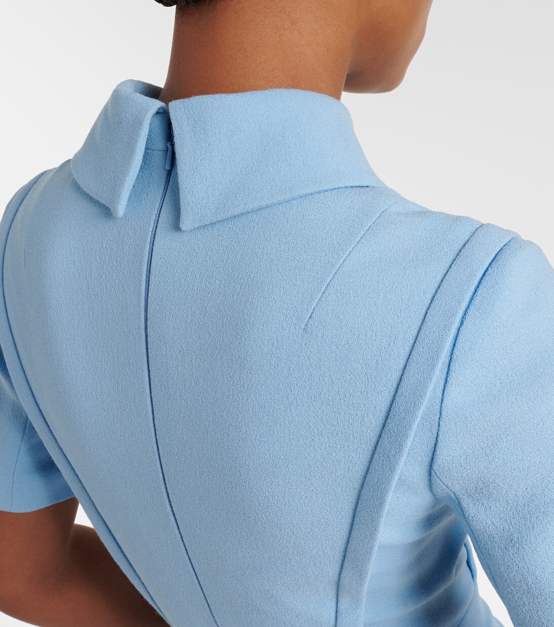 Emilia Wickstead, одновременно изысканная и лаконичная, доказывает, что простые, хорошо выполненные силуэты всегда будут привлекать внимание. Коктейльное платье Valletta из шерсти дополнено острым воротником и разрезом сзади.