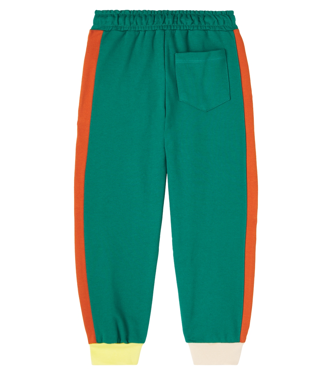 Fábula воспевает детскую прихоть благодаря игривому дизайну, созданному для максимального комфорта. Эти спортивные брюки выполнены из яркого хлопкового трикотажа с контрастными полосками по бокам, манжетами и талией на резинке с завязками.