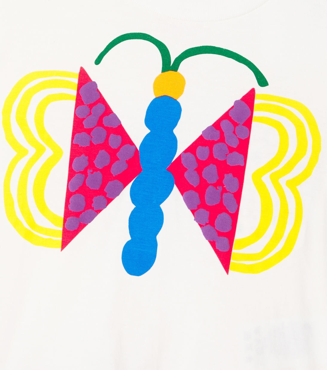 Fábula воспевает детскую прихоть благодаря игривым и комфортным дизайнам. Этот топ Silk Borboiris сшит из хлопка с ярким принтом в виде бабочек и полосками по подолу.
