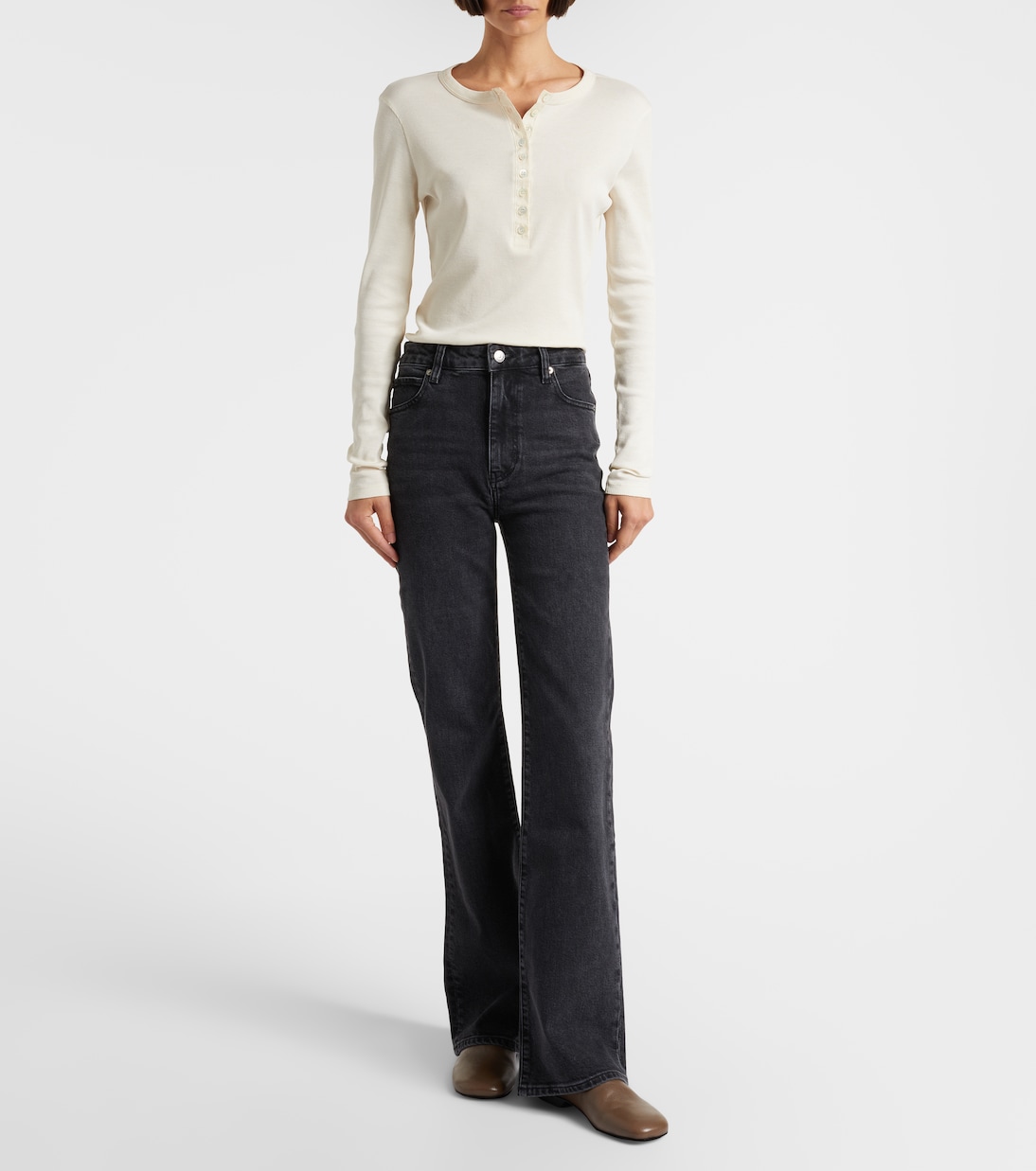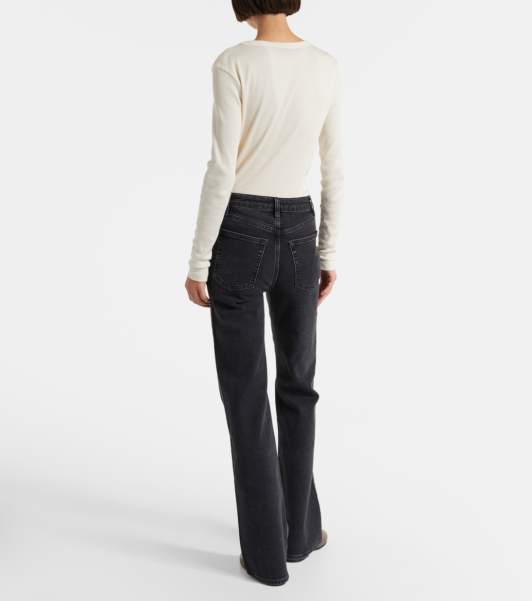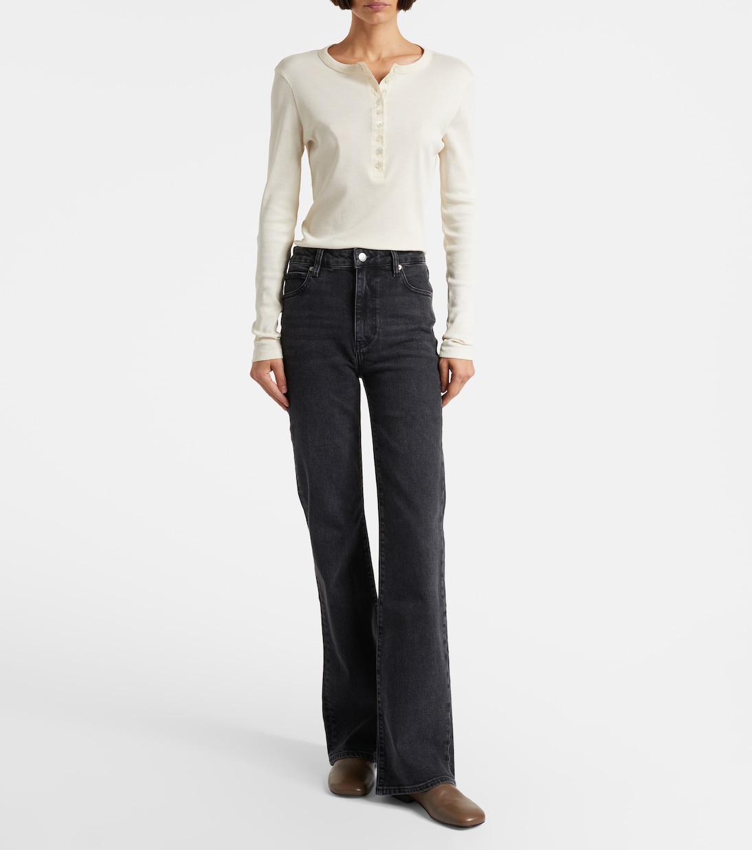 Frame создает знаковые дизайны, используя честные методы производства и материалы из экологически чистых источников. Джинсы Arrow сшиты из эластичного денима и отличаются высокой посадкой, подчеркивающей фигуру, и непринужденным расклешенным силуэтом.