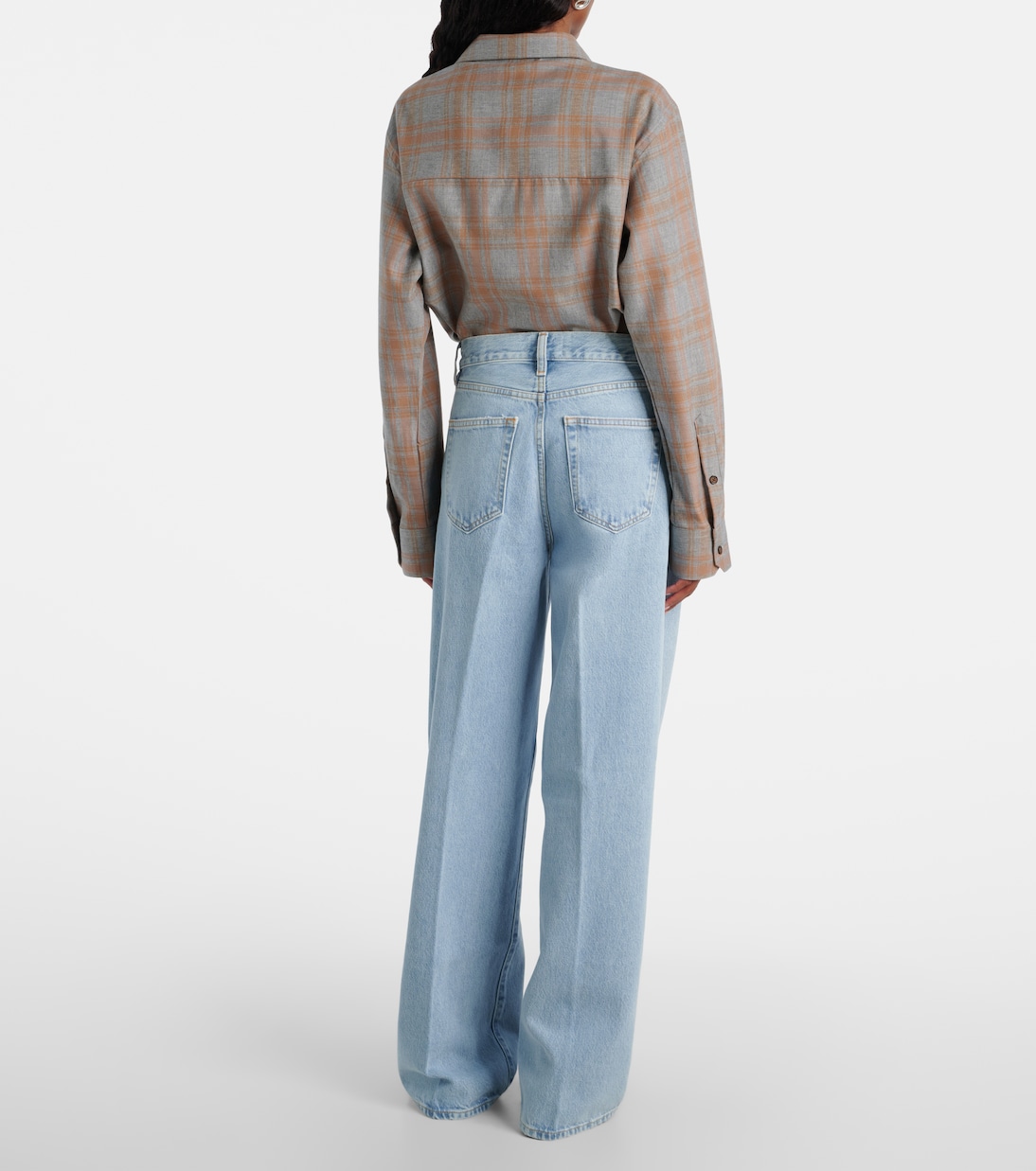 Frame создает культовые модели джинсовой одежды, используя честные методы производства и материалы из экологически чистых источников. Джинсы Collegiate имеют высокую посадку, широкий силуэт, потайную планку на пуговицах, пять карманов и шлевки для ремня.