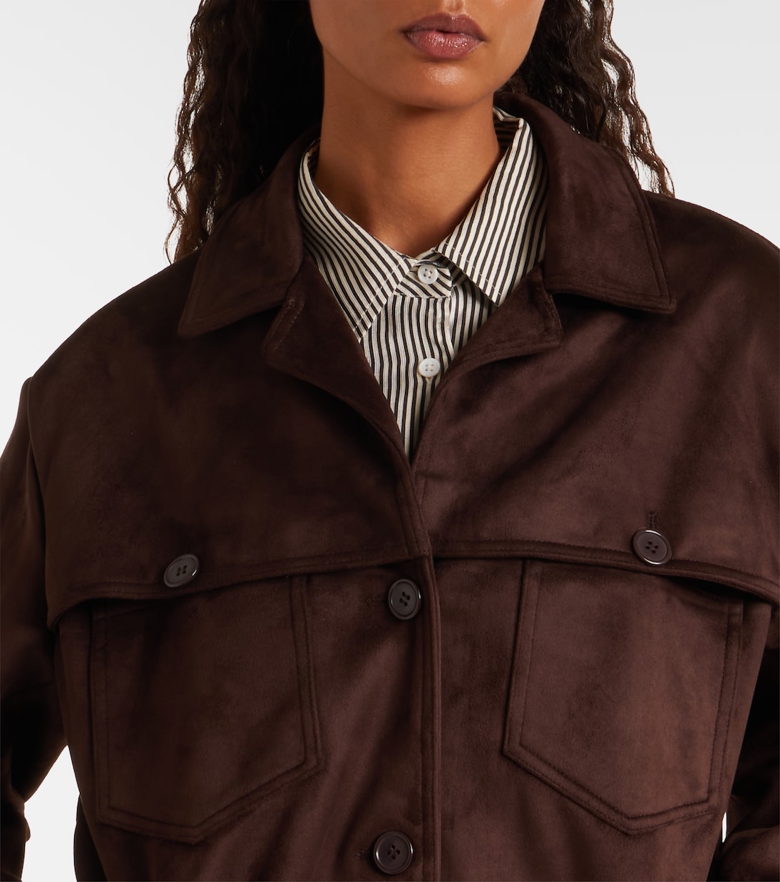 Frankie Shop покорил сердца модников своими простыми в ношении и эффективными вещами первой необходимости. Куртка Hester имеет свободный силуэт и подбитые плечи, а также эффект замши.
