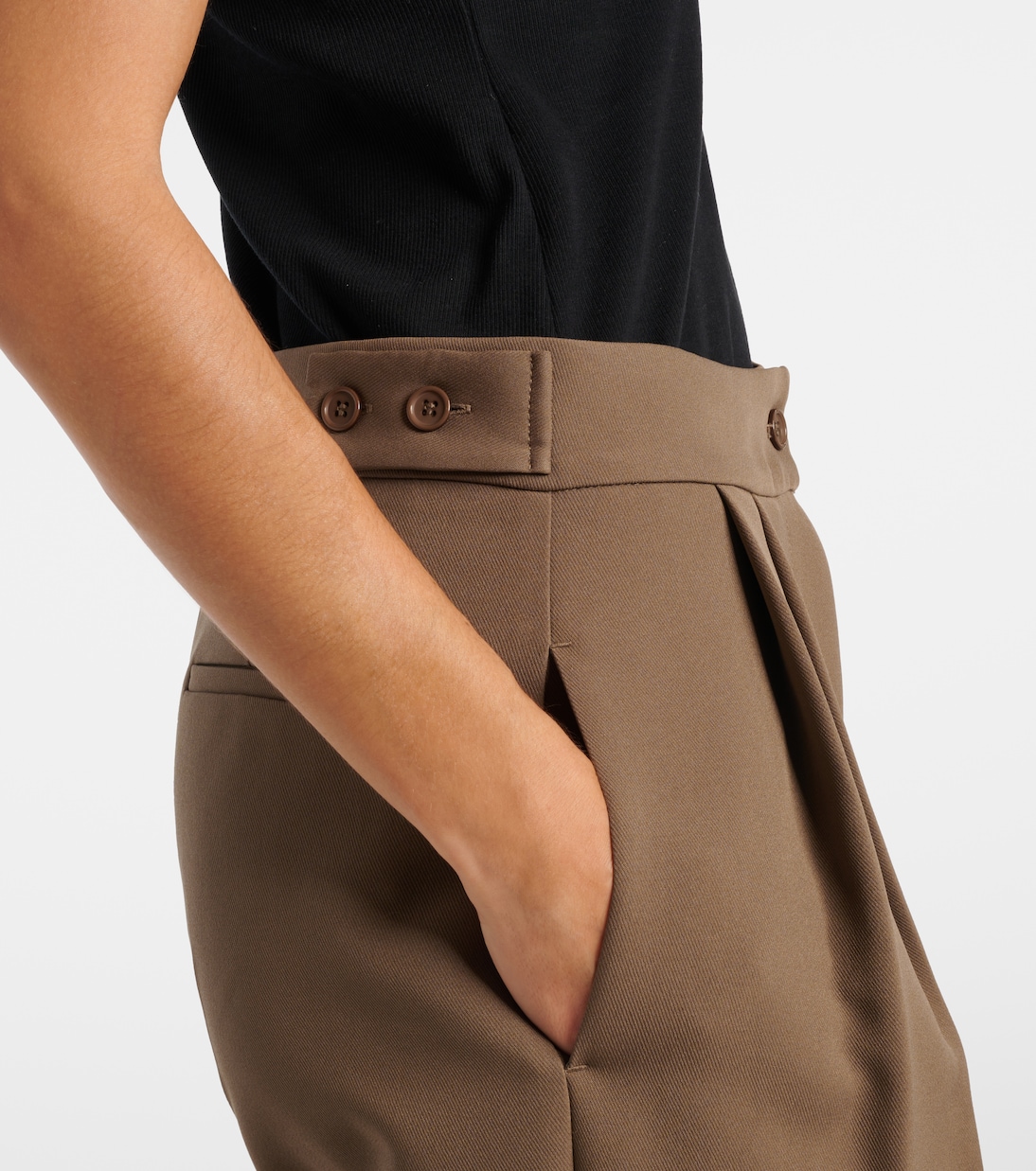 Frankie Shop покорил сердца модниц своими легкими и эффектными базовыми вещами. Брюки Doyer из ткани средней плотности отличаются свободным широким силуэтом и плиссировкой.
