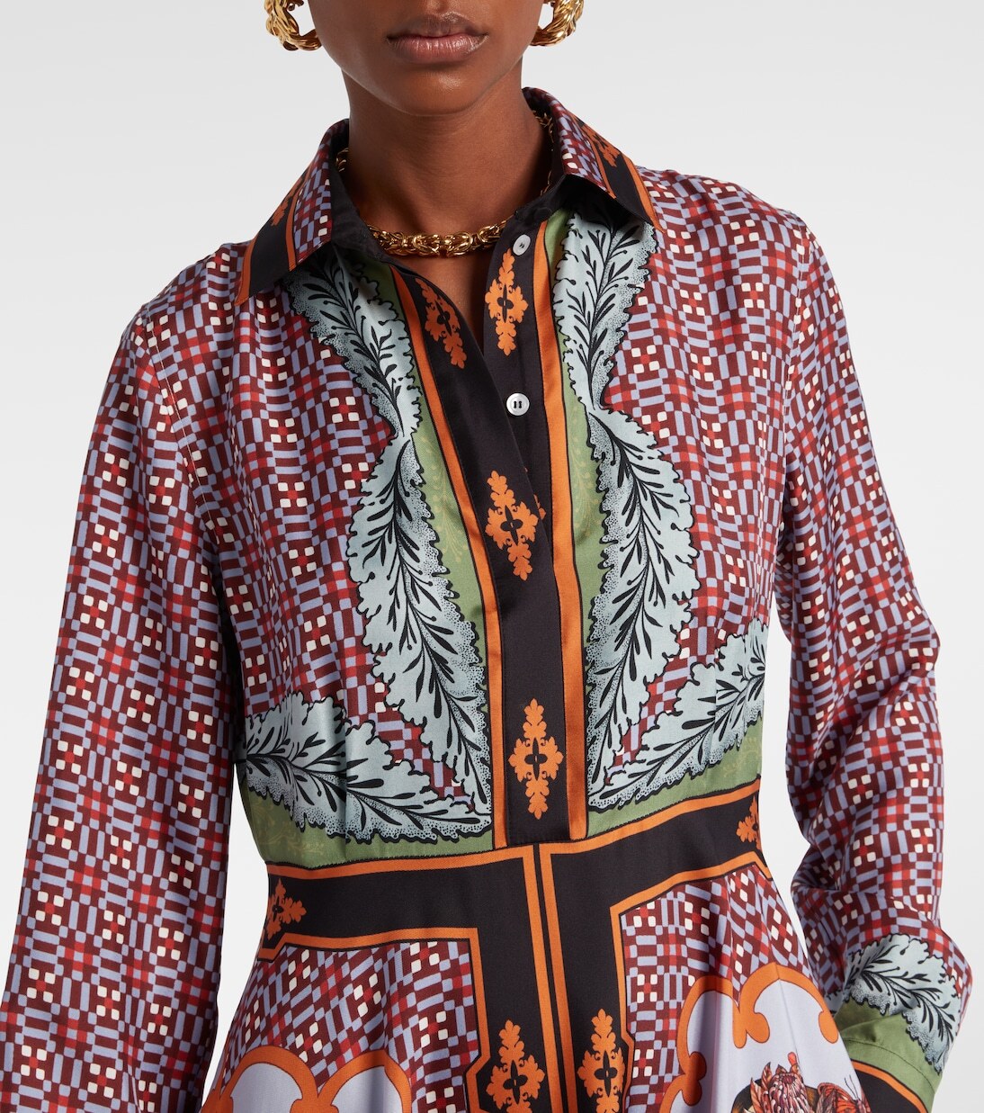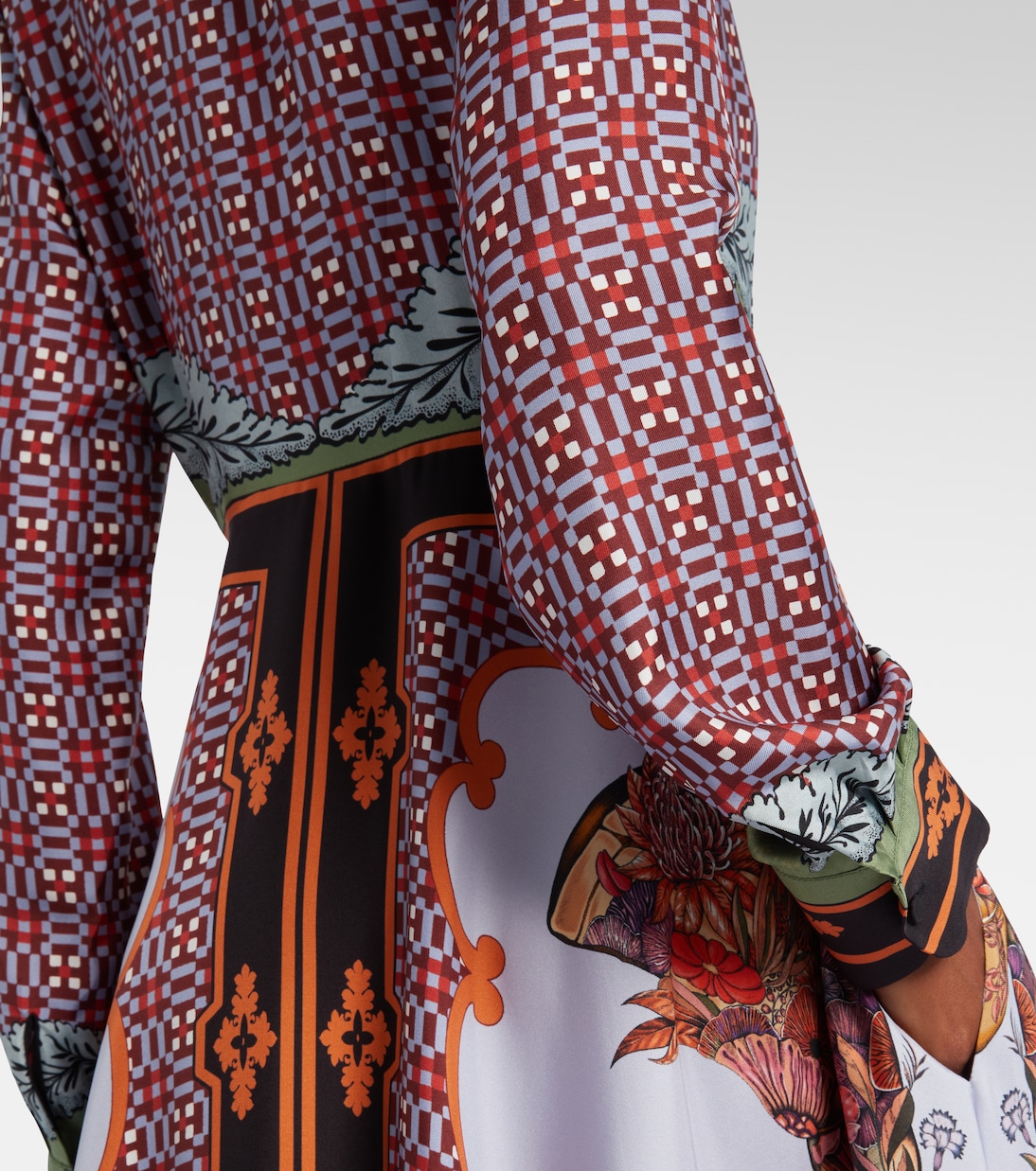 La DoubleJ известен яркими, воздушными моделями, такими как длинное платье из шелкового твила с принтом Сан-Пьетро. Платье сделано в Италии, имеет струящуюся юбку и частично застегивающийся перед.