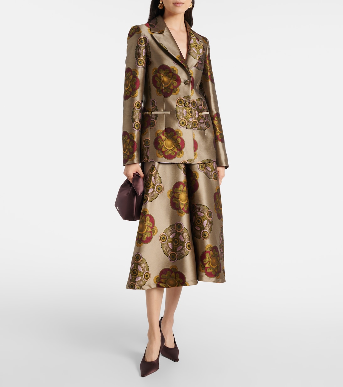 La DoubleJ сотрудничает с ведущими миланскими производителями текстиля, чтобы воплотить в жизнь архивные узоры в своих фирменных эклектичных стилях. Блейзер 24/7 выполнен с ярким фирменным принтом, острыми лацканами и классической застежкой на пуговицы спереди.