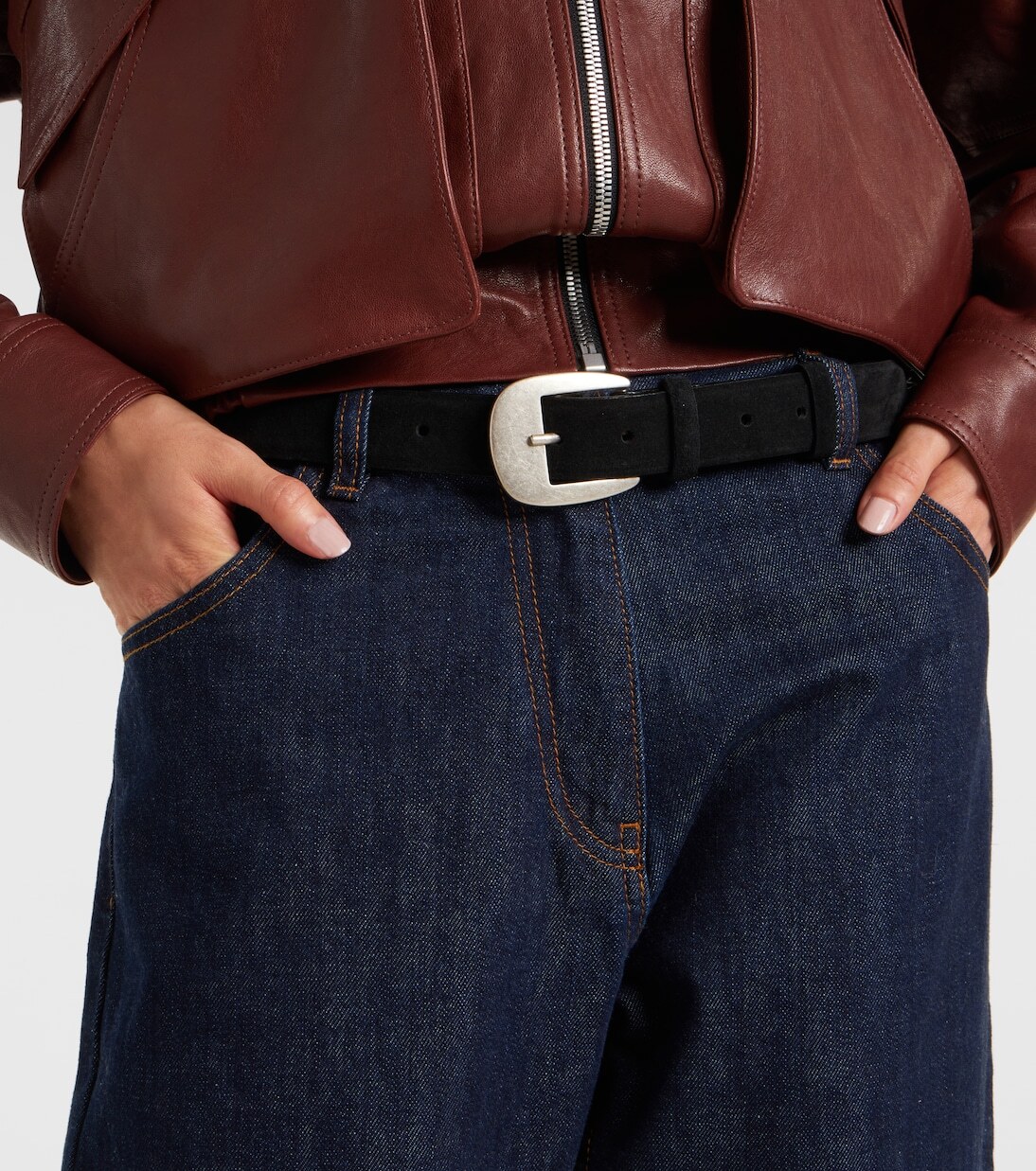 Magda Butrym стремится подчеркнуть свою индивидуальность, используя яркий современный стиль, мастерски воплощенный в мастерстве ручной работы. Этот ремень из замши дополнен серебристой пряжкой.