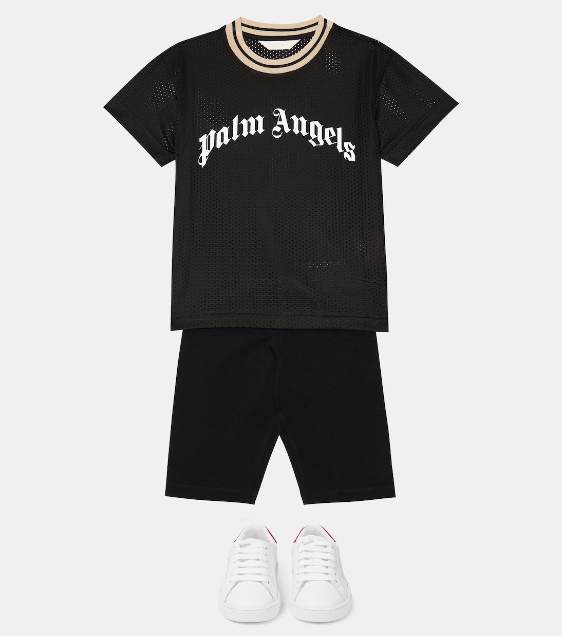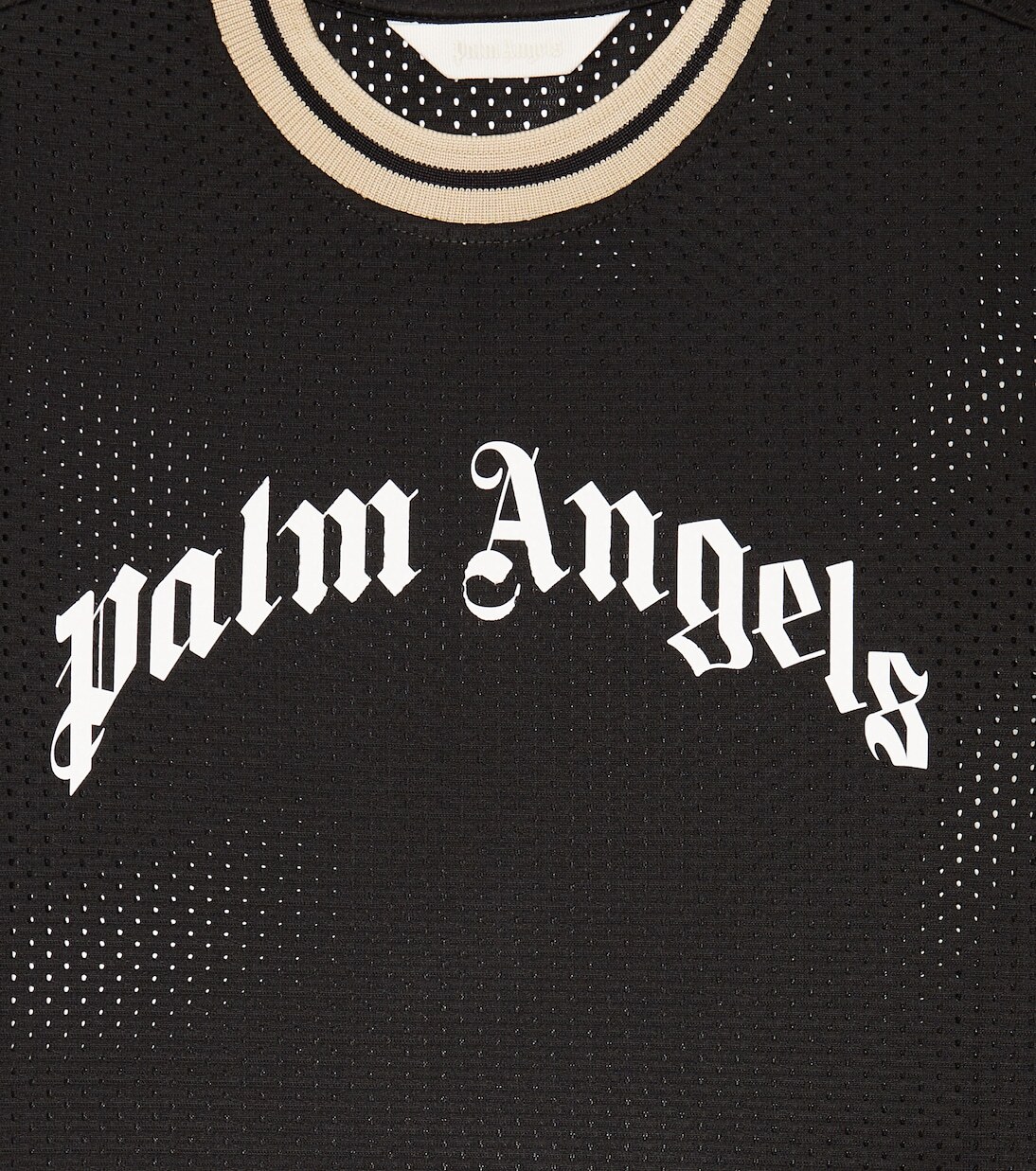 Palm Angels Kids уменьшает размер своей культовой толстовки для людей с маленьким телосложением. Она выполнена из черной сетки и дополнена фирменным логотипом на груди.