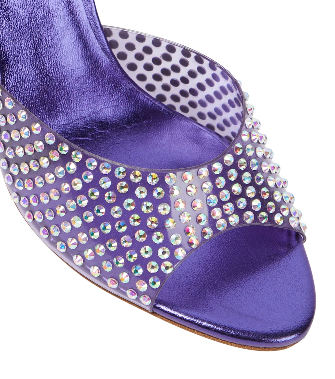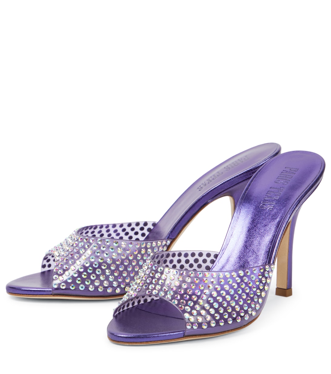 Paris Texas разрабатывает привлекательную обувь, например, мюли Holly Penelope. Они сделаны из металлизированной кожи и инкрустированы кристаллами поверх ремешков из ПВХ.