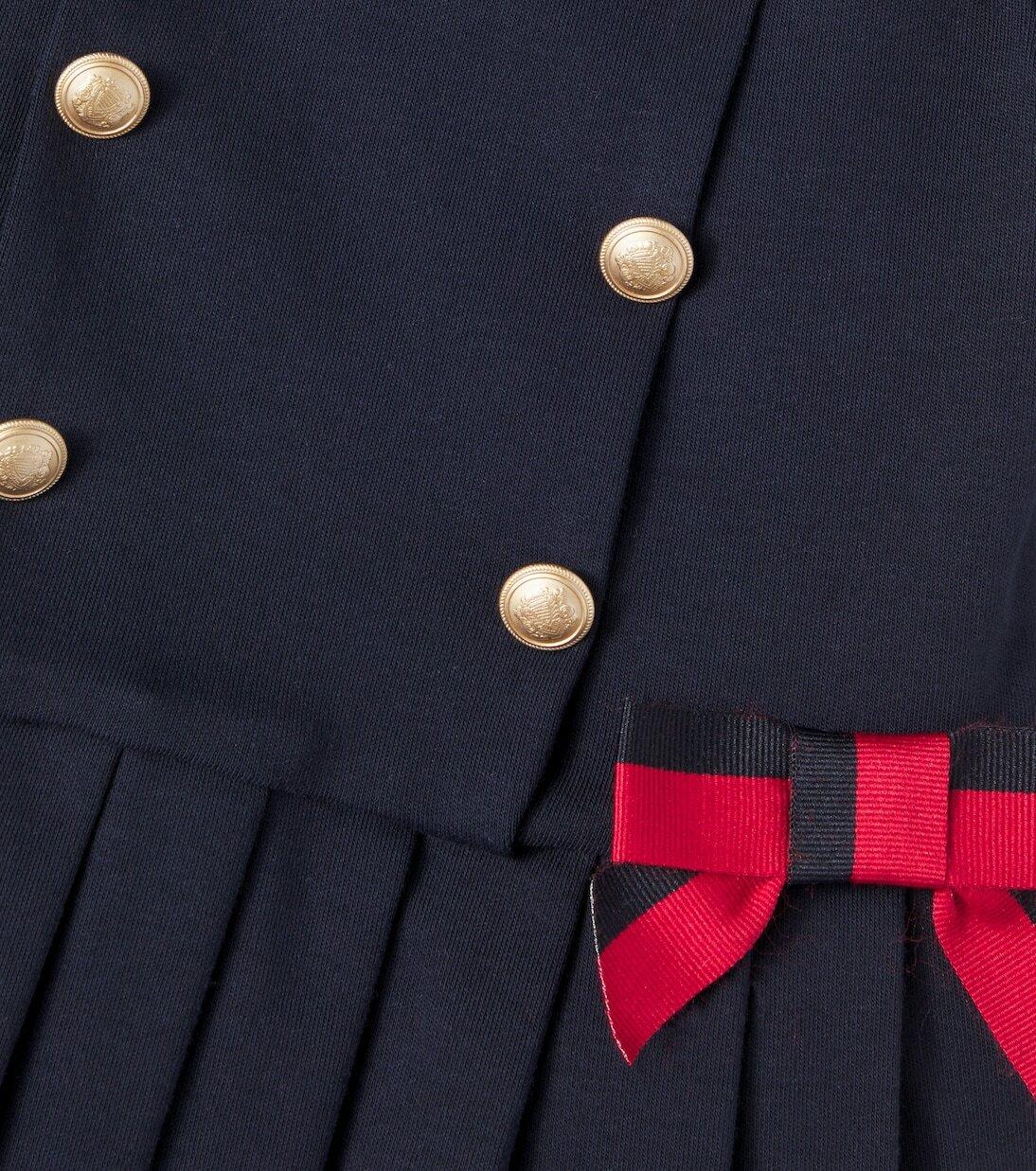 Patachou предлагает шикарные творения в миниатюрных размерах. Это очаровательное платье из хлопковой ткани с гладким воротником, плиссированной юбкой и ярким бантом.