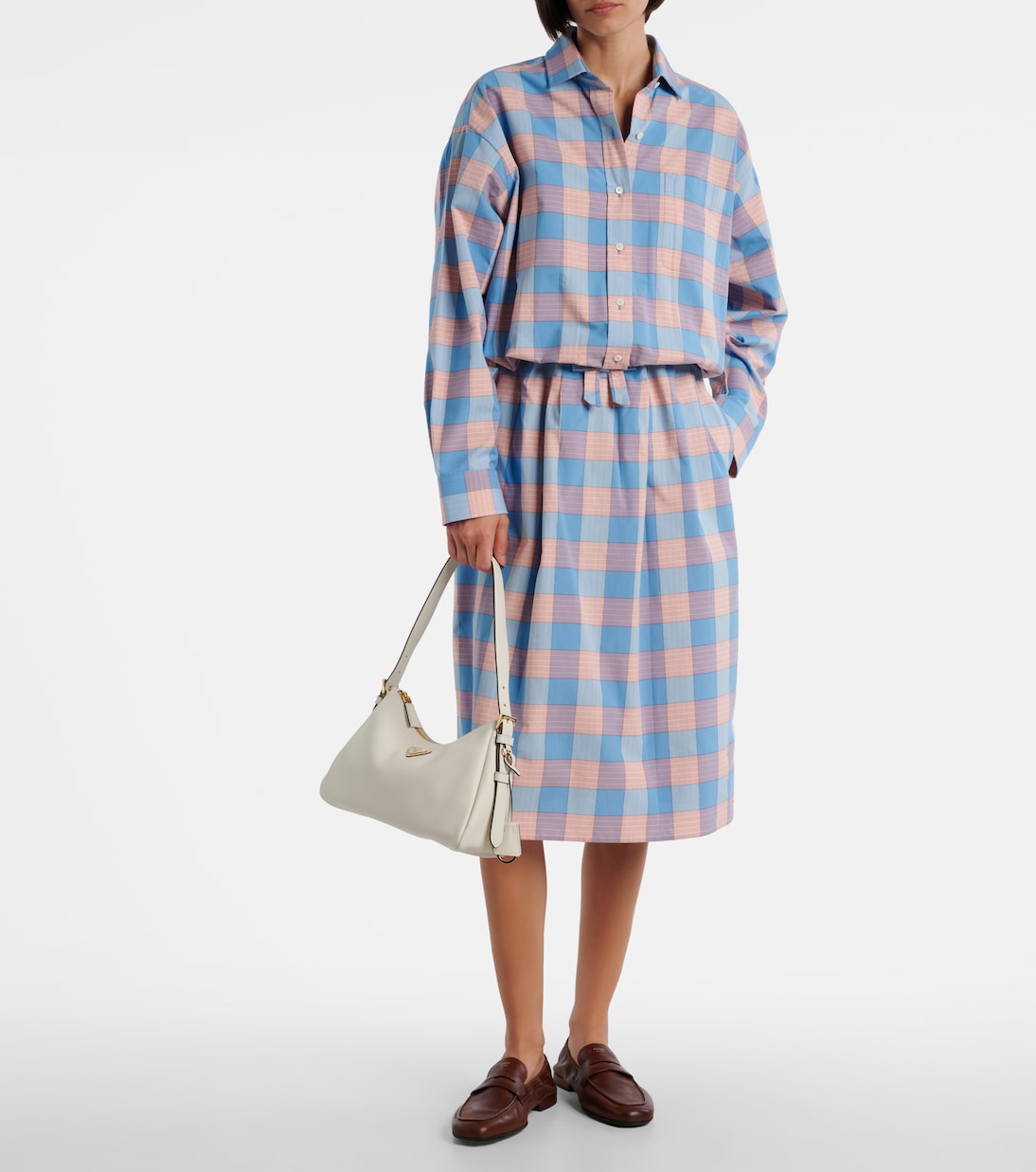 Prada переносит итальянское наследие в ярко выраженную современность, используя лаконичный и модный подход. Сумка Prada Aimée Medium выполнена из кожи и имеет мягкий силуэт с фирменной фурнитурой в виде логотипа.