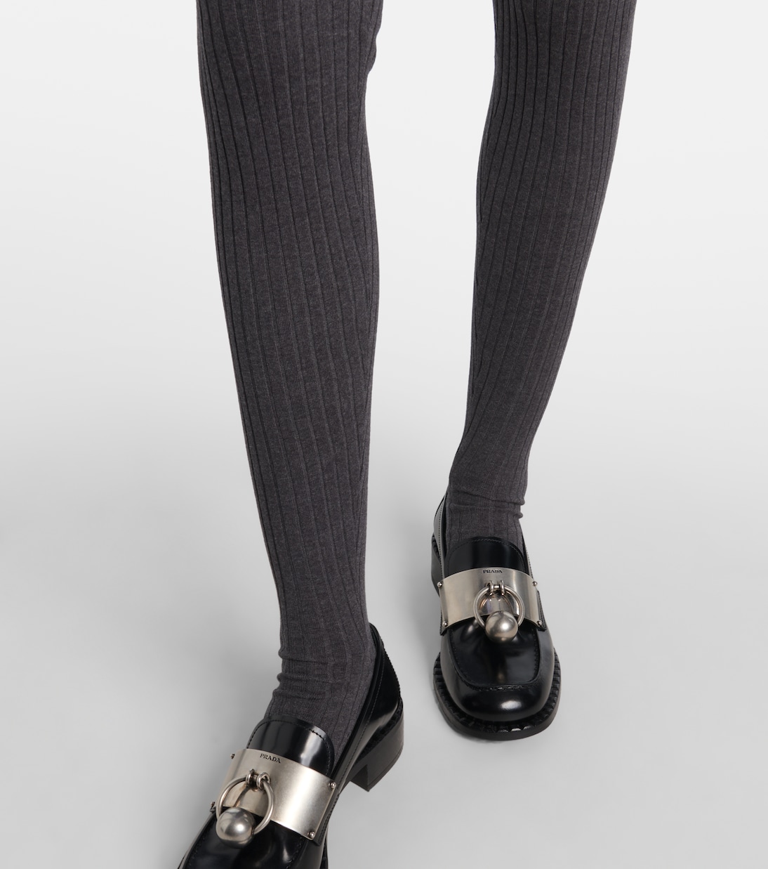 Prada переносит итальянское наследие в ярко выраженную современность, предлагая лаконичный и модный подход. Эти колготки плотной вязки в рубчик из смесовой хлопковой ткани дополнены шлевками для ремня.