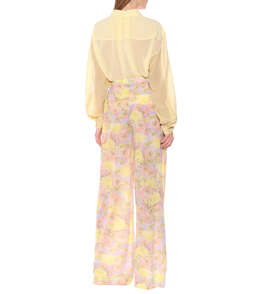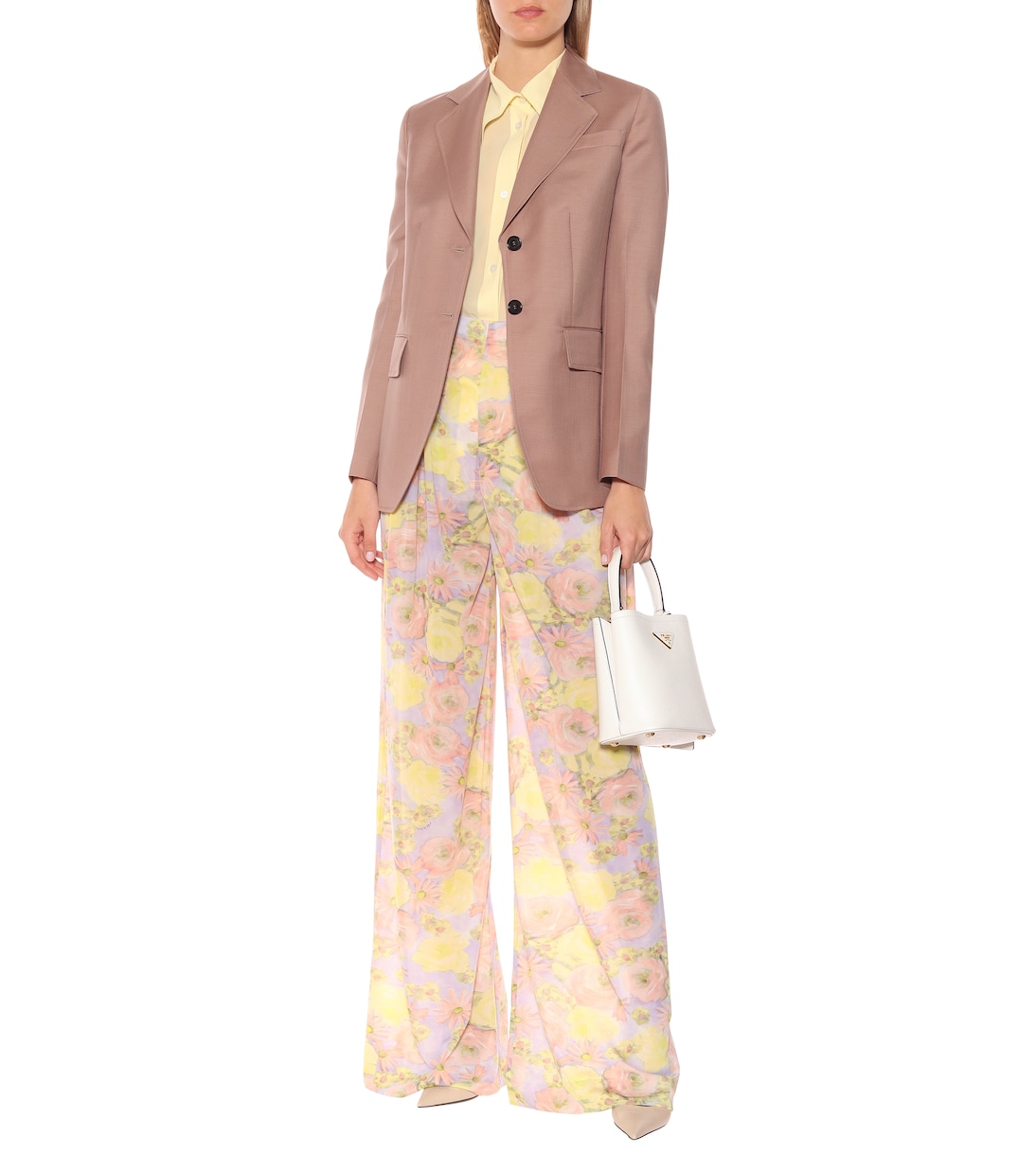 Prada привносит свою фирменную беззаботность в эти широкие брюки с пастельными цветочными узорами. Высокая талия, изготовленная в Италии из легкого джерси, создает струящийся силуэт. Подберите к нему подходящий топ из коллекции или подчеркните женственность с помощью прочной и роскошной кожаной куртки.