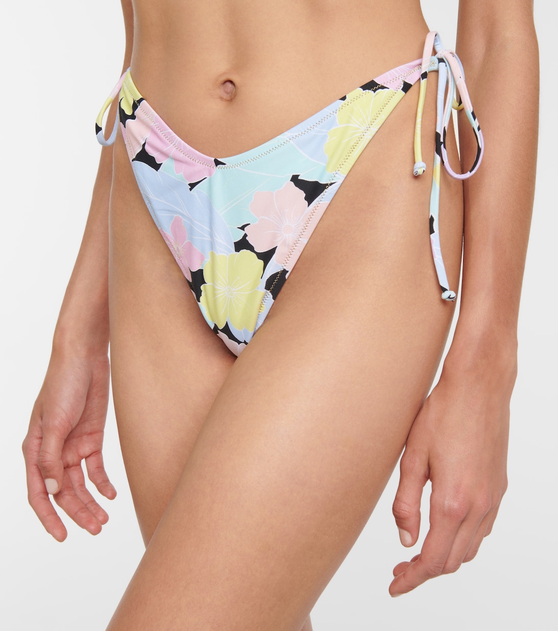 Reina Olga переосмысливает ретро-стили купальников для современной женщины, предлагая яркие модели, такие как эти плавки-бикини Susan в стиле Гавайи. Они изготовлены вручную в Италии и завязываются на элегантные завязки по бокам в стиле 90-х, которые можно подтянуть, чтобы зафиксировать купальник на талии. Обратите внимание на золотистую зигзагообразную строчку, которая служит фирменным элементом.