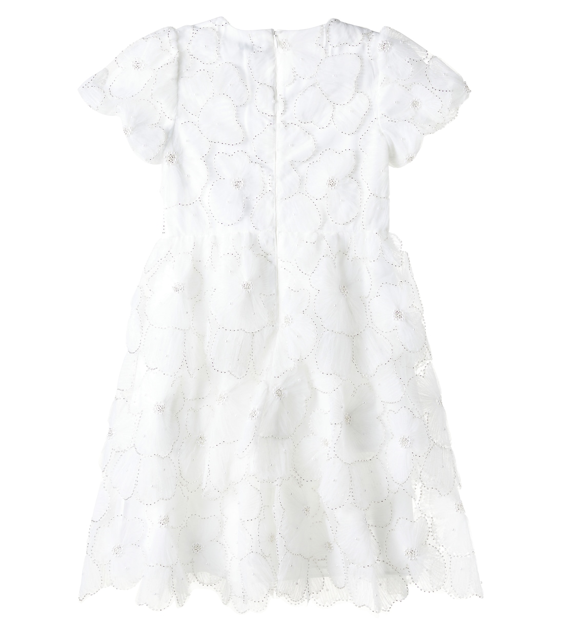 Self-Portrait Kids предлагает красивые платья для вечеринок в миниатюрных размерах. Это вышитое платье полностью отделано воланами и украшено цветочным узором по всей поверхности.