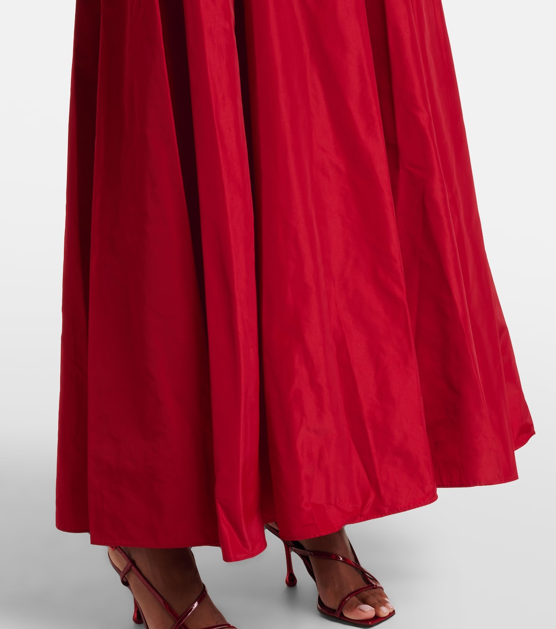 Staud игриво сочетает контрастные фактуры в этом привлекательном макси-платье. Лиф понте имеет минималистичный силуэт с короткими рукавами и круглым вырезом, а широкая юбка А-силуэта из репсовой ленты украшена широкими складками.